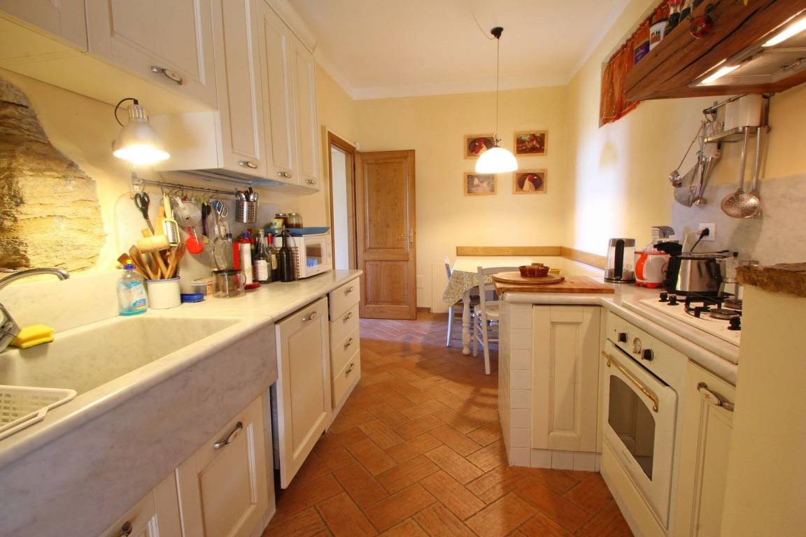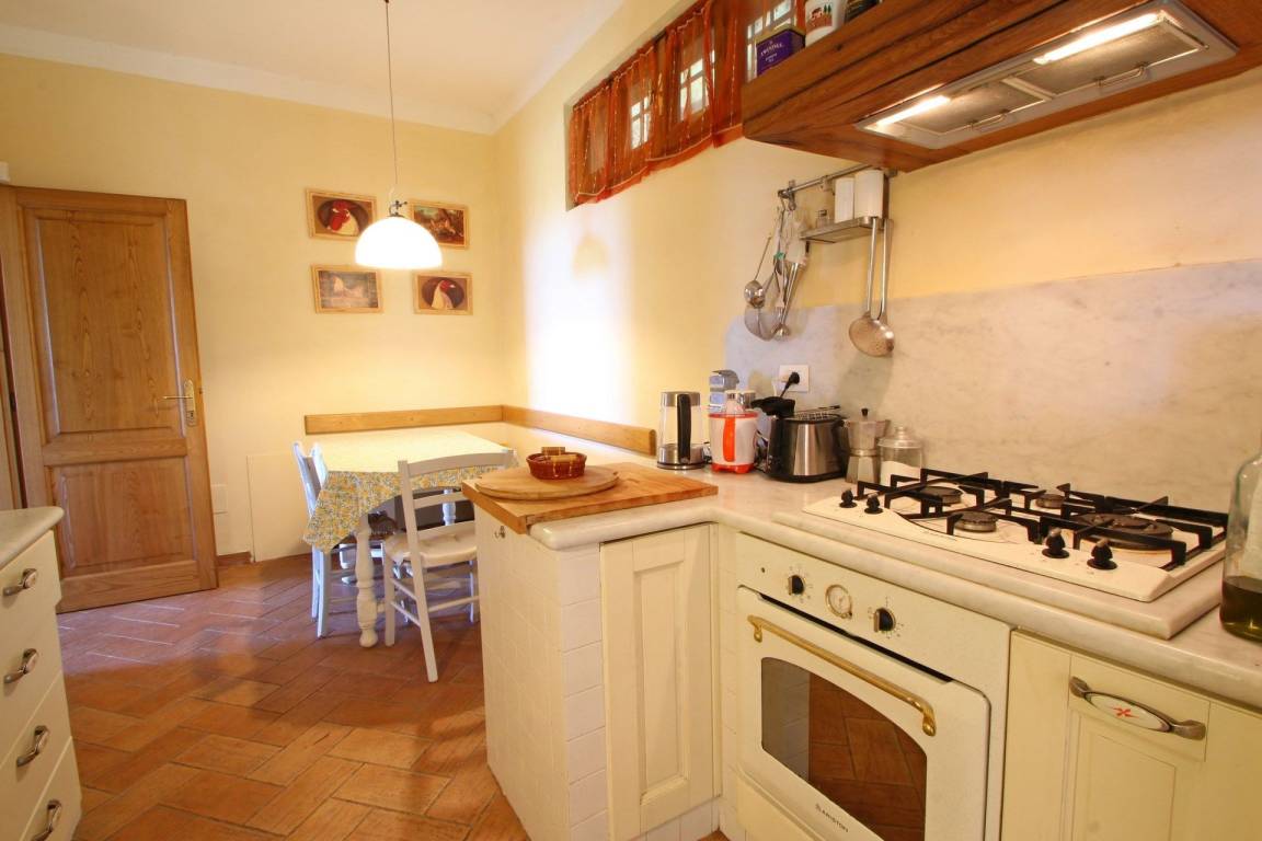 Küche: Esstisch (Personen: 4), Spülmaschine, Kühlschrank, Tiefkühler, Ofen, Italienische Kaffeemaschine, Ausgang auf die Veranda.