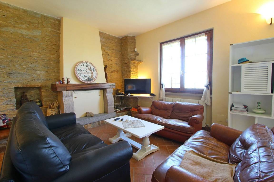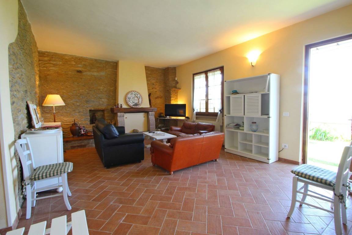 Wohnzimmer: zwei Sofas (Personen: 2), Sessel, Kamin, Esstisch (Personen: 8), Satelliten-TV, TV, Ausgang auf den Garten.