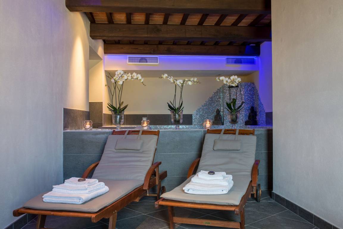 Wellnessbereich: Schwimmbad, Heißwasser-Whirlpool im Haus, Dusche, Sauna, Sonnenliege, Klimaanlage, WiFi Internet, Dampfbad.