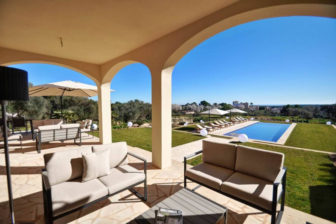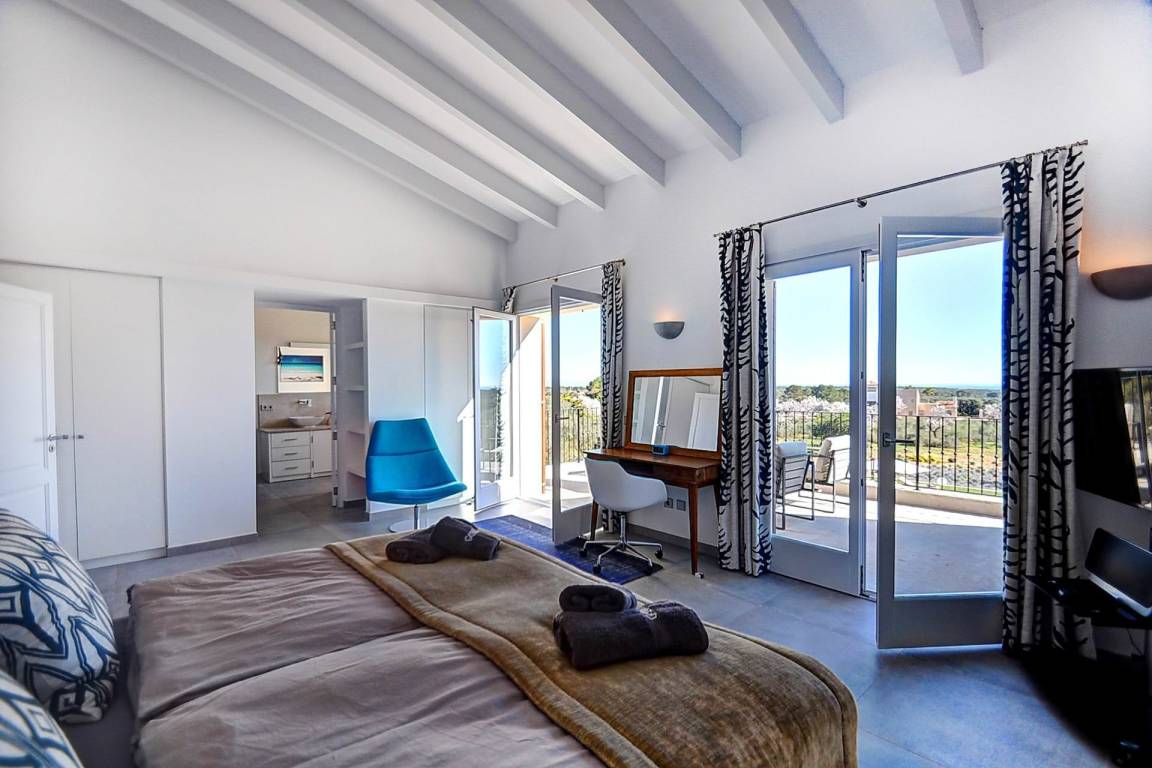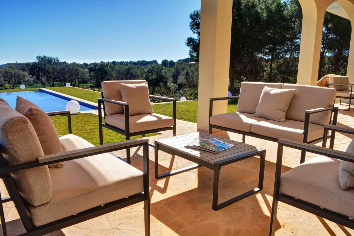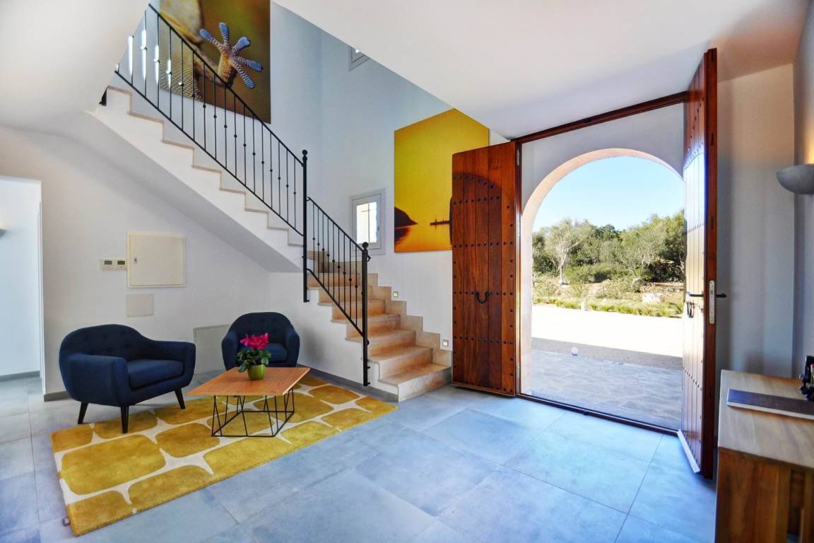 Die Villa erstreckt sich über 1,6 Hektar landschaftlich gestaltetes Gelände auf Mallorca und bietet Platz für bis zu 12 Gäste in 6 großzügig ausgestatteten Schlafzimmern, von denen jedes ein eigenes en-suite Bad verfügt. Das Innere verbindet moderne und traditionelle Elemente; ein großer Wohnbereich ist mit hochwertigen Möbeln eingerichtet, und die vollständig ausgestattete Küche öffnet sich zusammen mit dem Wohnzimmer direkt auf eine geräumige Terrasse, die von Lavendel und Zitrusbäumen umgeben ist.