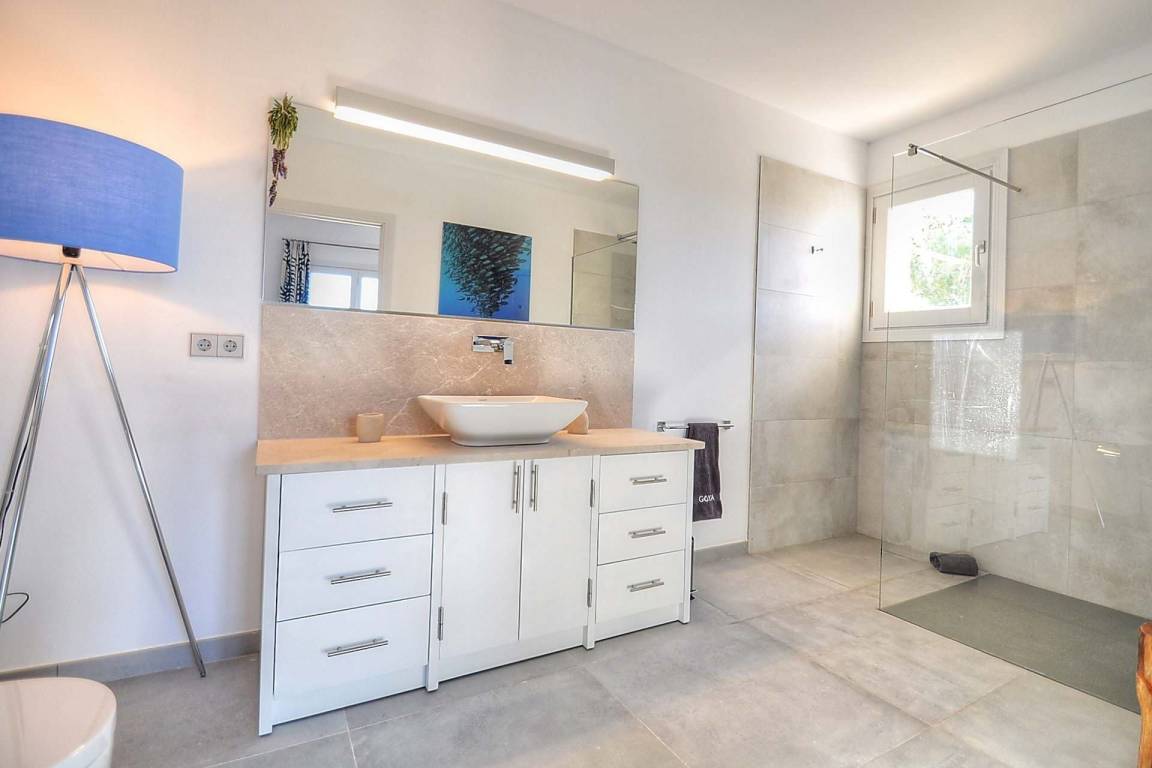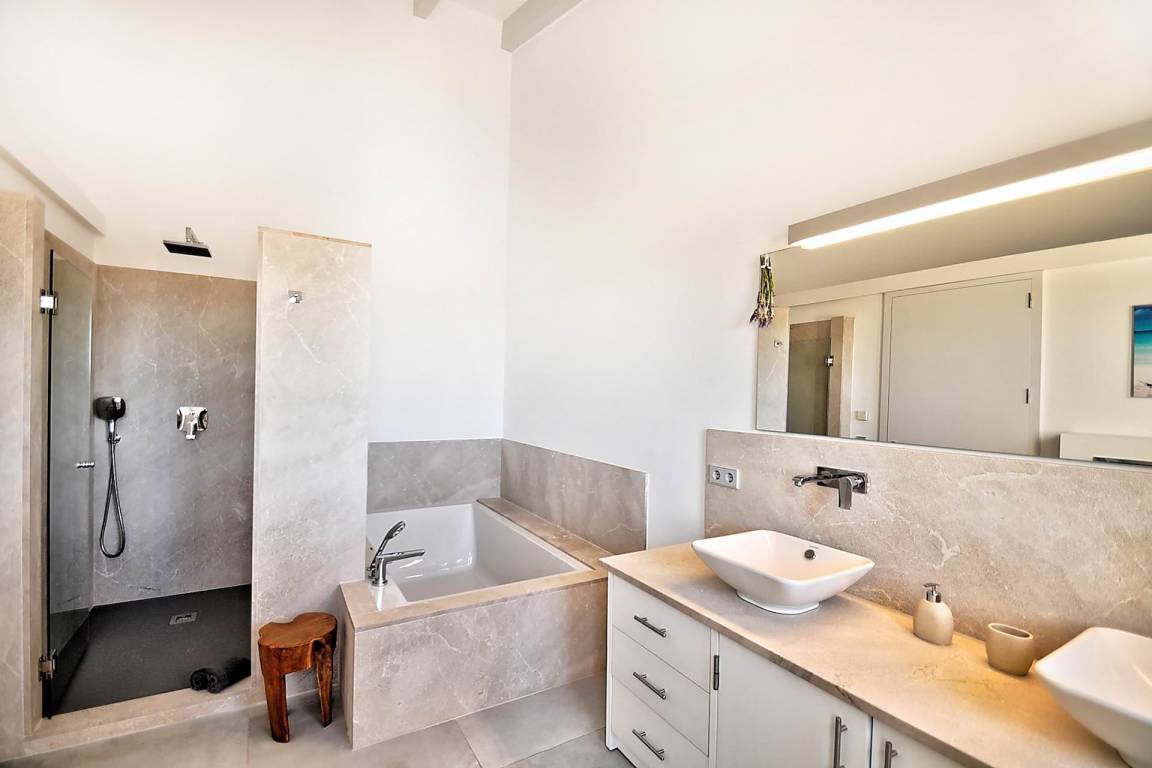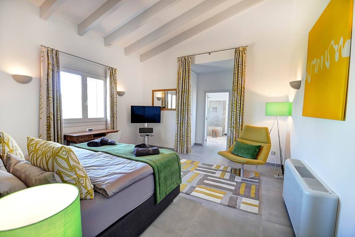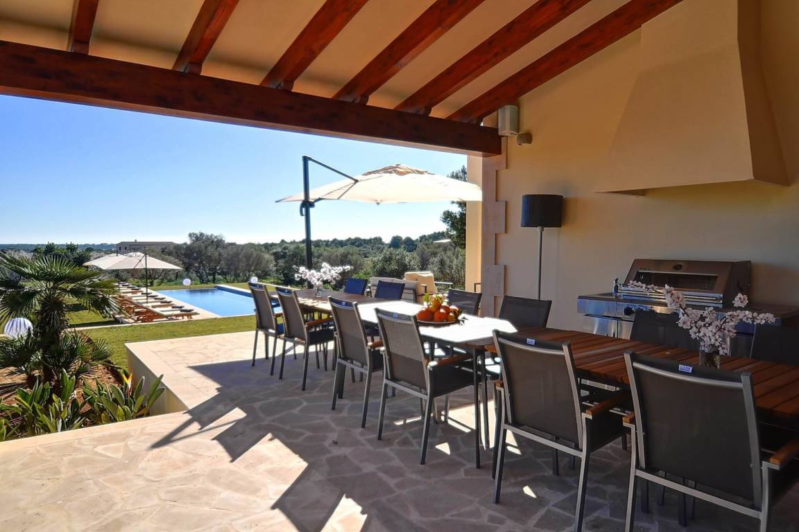 Die Villa erstreckt sich über 1,6 Hektar landschaftlich gestaltetes Gelände auf Mallorca und bietet Platz für bis zu 12 Gäste in 6 großzügig ausgestatteten Schlafzimmern, von denen jedes ein eigenes en-suite Bad verfügt. Das Innere verbindet moderne und traditionelle Elemente; ein großer Wohnbereich ist mit hochwertigen Möbeln eingerichtet, und die vollständig ausgestattete Küche öffnet sich zusammen mit dem Wohnzimmer direkt auf eine geräumige Terrasse, die von Lavendel und Zitrusbäumen umgeben ist.