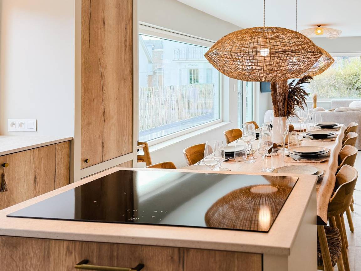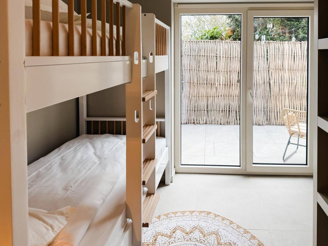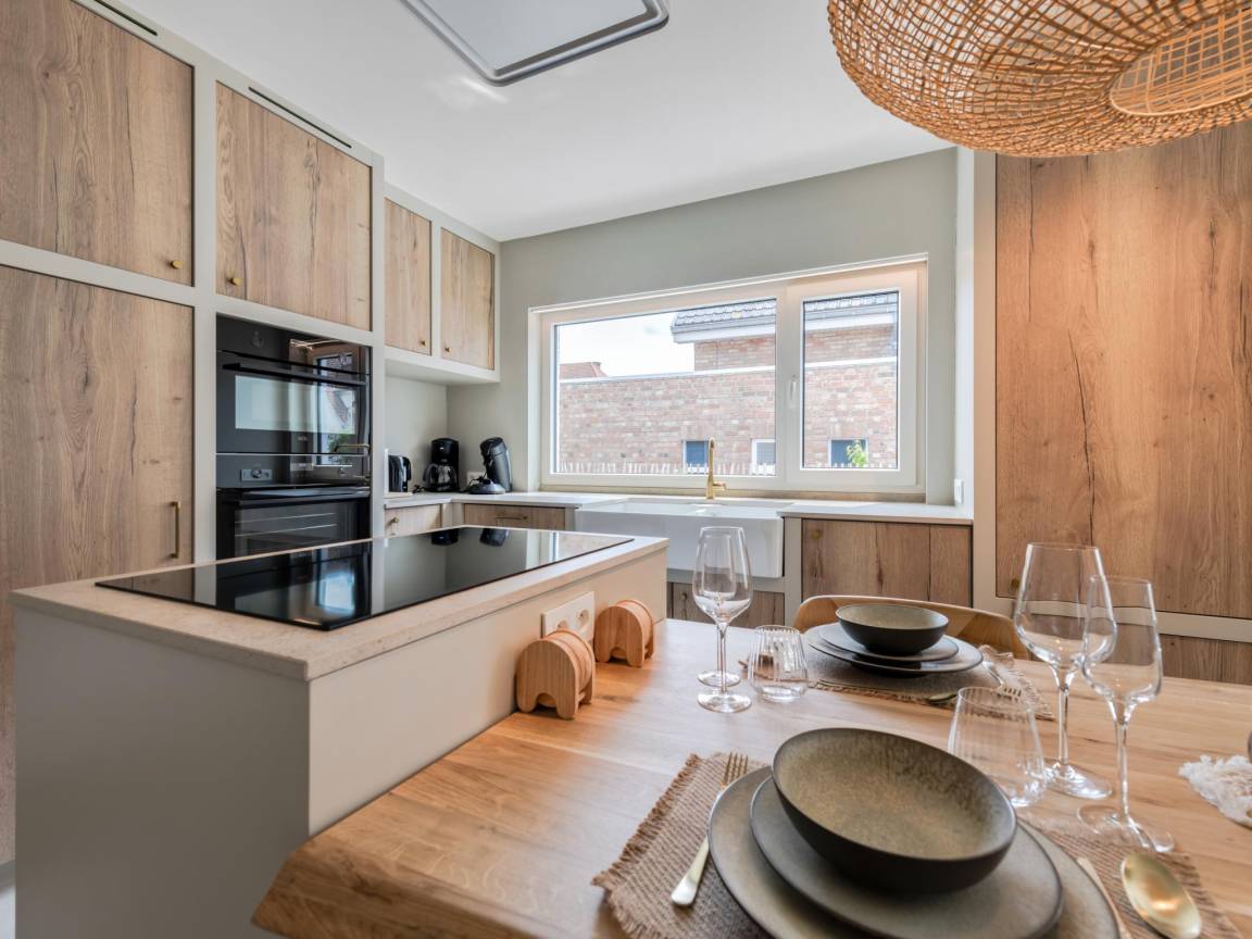 Layout : Parterre: Eingang mit Toilette , offene Küche mit Kochplatte(Induktion), Wasserkocher, Toaster, Kaffeemaschine(Filter), Kaffeemaschine(senseo pads), Backofen, Kombi-Mikrowelle, Geschirrspüler, Kühl-/Gefrierkombination, 1x Hochstuhl , Wohn/Esszimmer mit TV(Flatscreen, digital, smart TV), Esstisch, Sitzecke, Radio , Schlafzimmer mit Etagenbett , 3x Schlafzimmer mit Doppelbett(180 x 200 cm) , Badezimmer mit Wäschetrockner, Dusche(ebenerdige Dusche), Waschbecken, Toilette, Waschmaschine, Föhn , Badezimmer mit Dusche(ebenerdige Dusche), Waschbecken, Föhn , Abstellraum