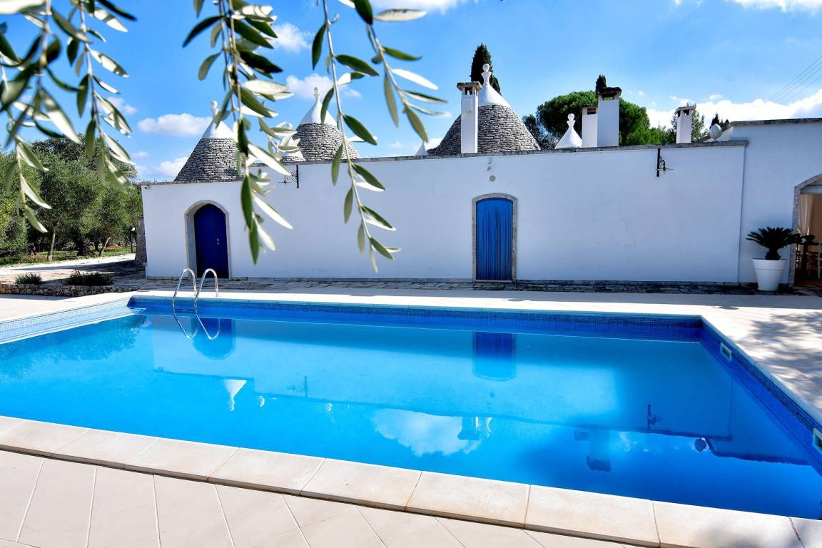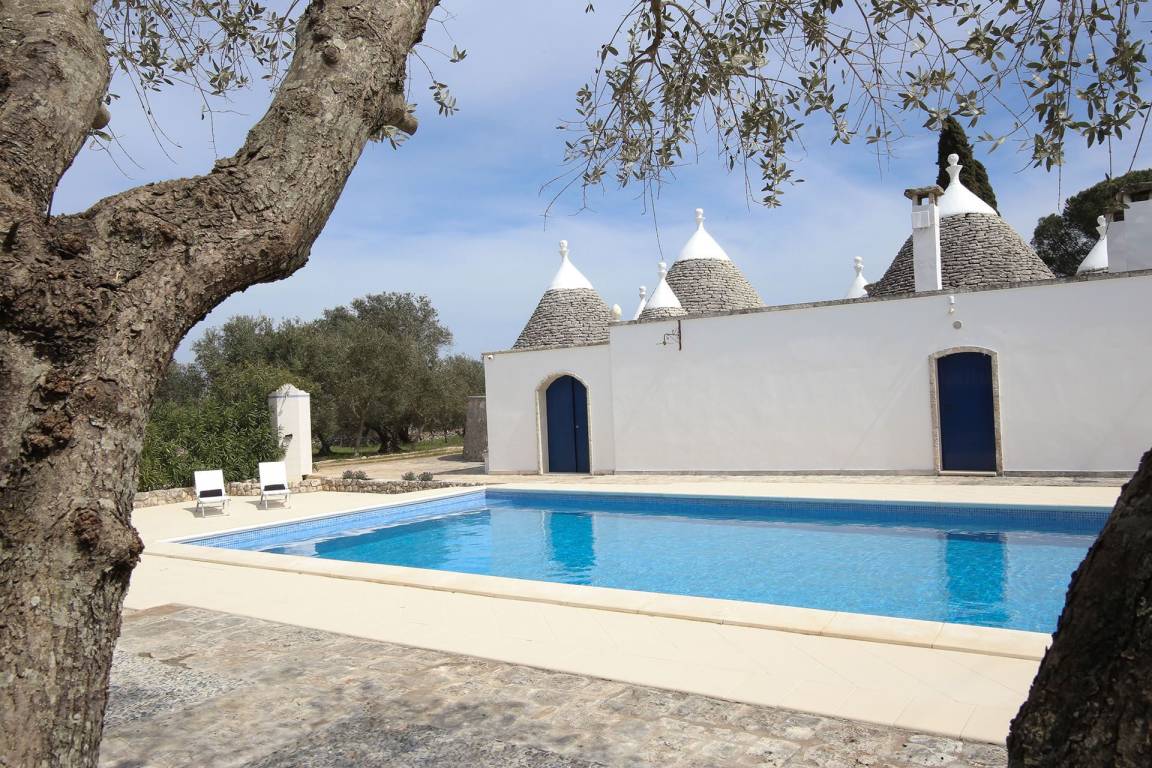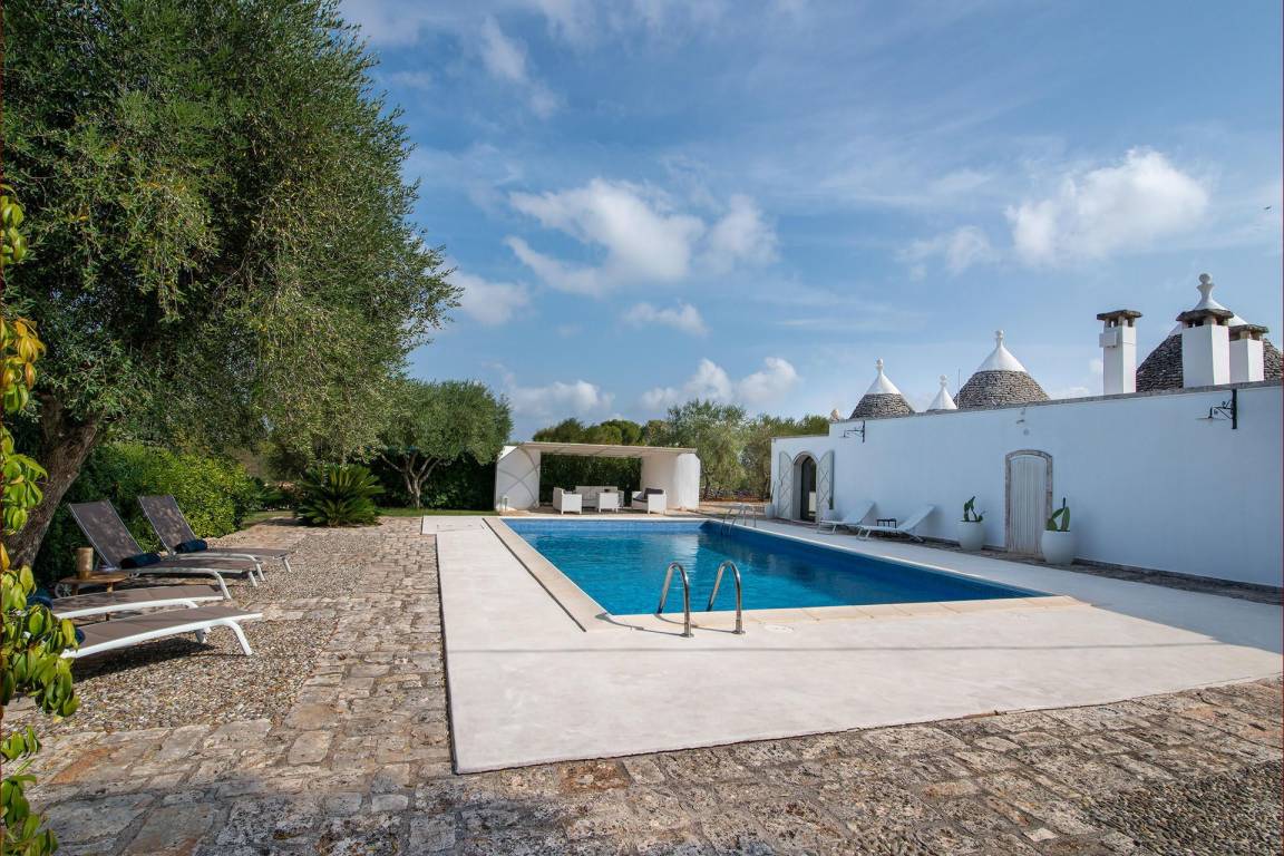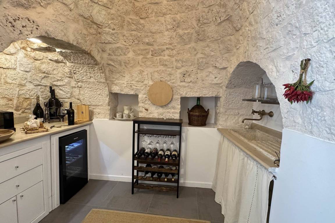 Die Küche der Haupttrulli verfügt über einen Kühlschrank, Gefrierschrank, 4 Gaskochfelder, einen Elektroofen, eine Geschirrspülmaschine und eine Nespresso-Kaffeemaschine; die Außenküche ist mit einem integrierten Kühlschrank, einer Spüle, 2 Induktionskochfeldern und einem Grill ausgestattet. Klimaanlage ist in allen Schlafzimmern, dem Wohnzimmer und der Hauptveranda vorhanden; Heizung ist ebenfalls verfügbar, und eine Waschmaschine befindet sich im Bad des Poolbereichs. Im Wohnzimmer der Haupttrulli stehen ein Fernseher und eine Stereoanlage zur Verfügung. Das Anwesen verfügt über einen privaten Garten und eine private Terrasse innerhalb der 2 Hektar großen landwirtschaftlichen Fläche mit Oliven- und Mandelhainen, Zierpflanzen, Hecken und Sträuchern; der Poolbereich ist von Mai bis Oktober geöffnet und wird von einem überdachten Pavillon mit Esstisch und einer überdachten Lounge mit Sofas umgeben. Ein Spielbereich mit Boccia und Tischtennis sowie ein Fitnessbereich sind vorhanden. Haustiere sind nicht gestattet.