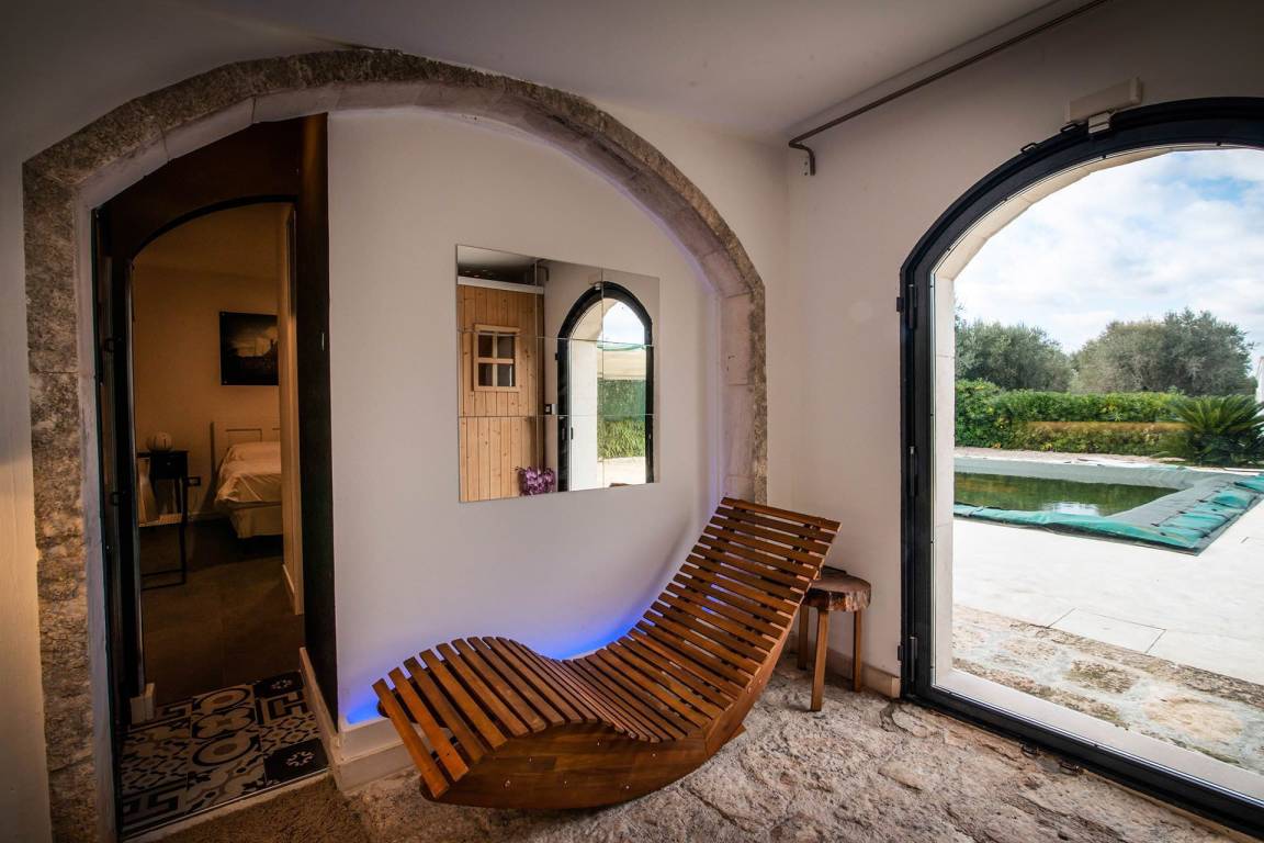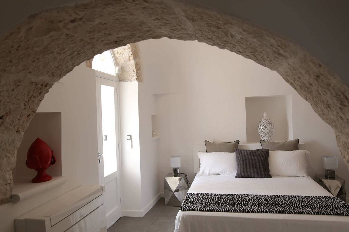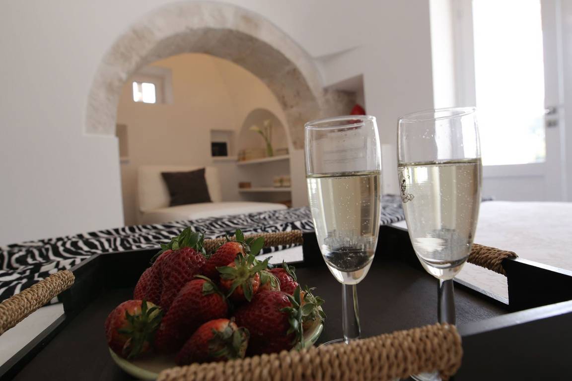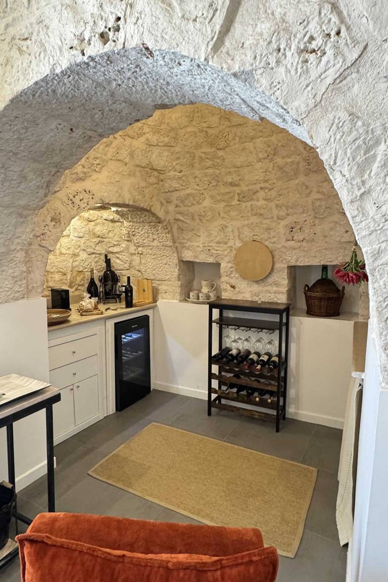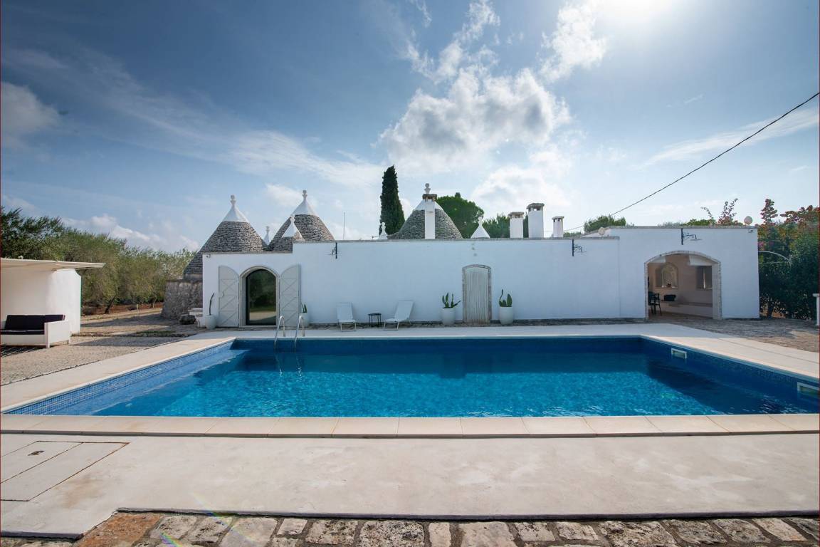 Die Küche der Haupttrulli verfügt über einen Kühlschrank, Gefrierschrank, 4 Gaskochfelder, einen Elektroofen, eine Geschirrspülmaschine und eine Nespresso-Kaffeemaschine; die Außenküche ist mit einem integrierten Kühlschrank, einer Spüle, 2 Induktionskochfeldern und einem Grill ausgestattet. Klimaanlage ist in allen Schlafzimmern, dem Wohnzimmer und der Hauptveranda vorhanden; Heizung ist ebenfalls verfügbar, und eine Waschmaschine befindet sich im Bad des Poolbereichs. Im Wohnzimmer der Haupttrulli stehen ein Fernseher und eine Stereoanlage zur Verfügung. Das Anwesen verfügt über einen privaten Garten und eine private Terrasse innerhalb der 2 Hektar großen landwirtschaftlichen Fläche mit Oliven- und Mandelhainen, Zierpflanzen, Hecken und Sträuchern; der Poolbereich ist von Mai bis Oktober geöffnet und wird von einem überdachten Pavillon mit Esstisch und einer überdachten Lounge mit Sofas umgeben. Ein Spielbereich mit Boccia und Tischtennis sowie ein Fitnessbereich sind vorhanden. Haustiere sind nicht gestattet.