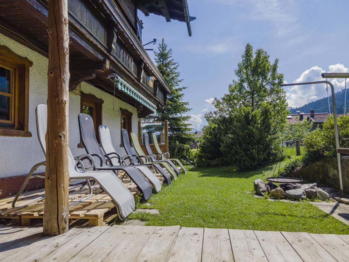 Skiabstellraum(Gemeinschaftliche Nutzung mit anderen Gästen) mit Skischuhheizung , 1x Garage(Gemeinschaftliche Nutzung mit dem Eigentümer und anderen Gästen , 1 Parkplatz), Terrasse(Gemeinschaftliche Nutzung mit anderen Gästen, 100 m²), Garten(Gemeinschaftliche Nutzung mit dem Eigentümer und anderen Gästen , teilweise umzäunt, 1300 m²) mit 4x Esstisch , Gartenmöbel, 7x Liegen, 2x BBQ(Holzkohle), 1x Parkplatz, Sandkasten, Spielgeräte, Rutsche, Gartenlounge, 6x Schaukel