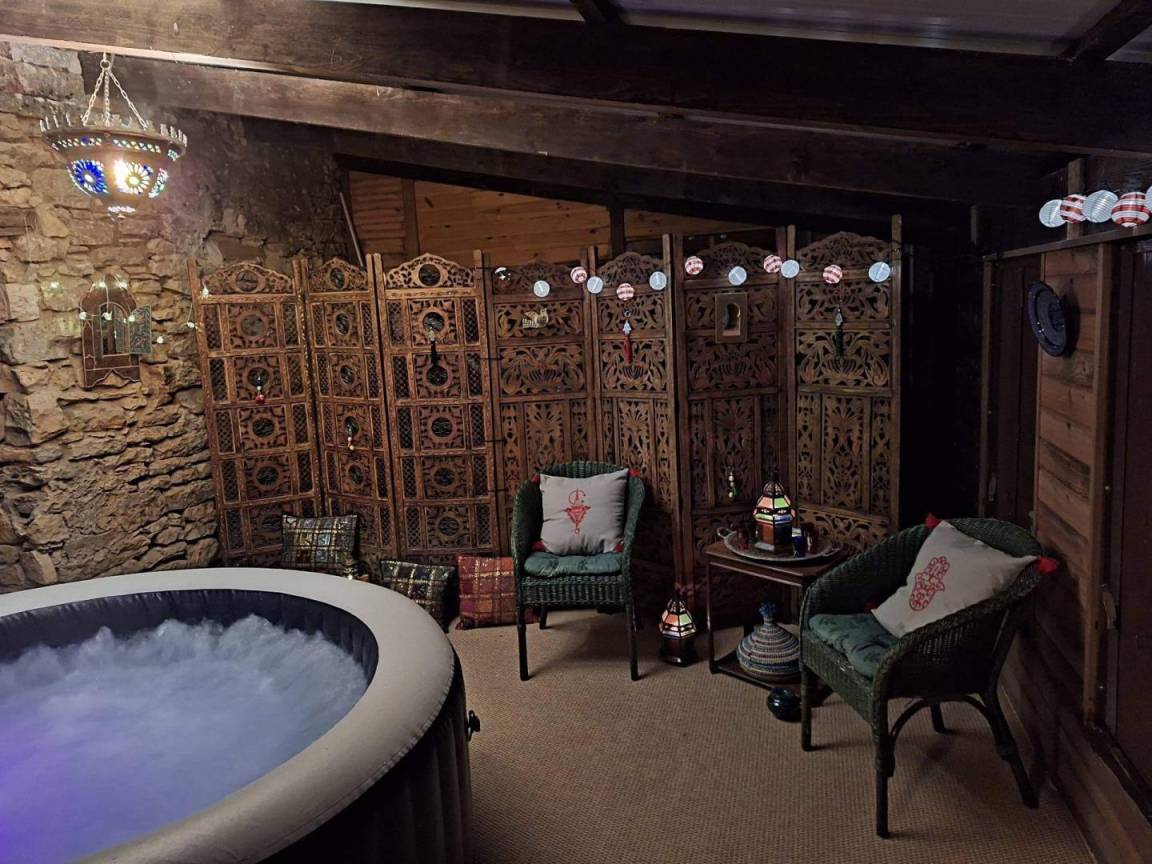 „Séjour très agréable en raison d'un gîte super équipé situé dans un hameau très calme avec une vue dégagée. Toutes les pièces sont climatisées, la piscine bien entretenue a fait le bonheur des enfants alors que les adultes pouvaient respirer le soir dans un spa étonnant par son ambiance zen. Les repas pouvaient être pris sur une terrasse couverte à côté d'un barbecue opérationnel. Un local fermé abrite une table de pingpong à l'abri des vents perturbateurs. Notons la présence de deux télévisions connectées, très pratique pour séparer les spectateurs par catégorie d'âge. Les chambres ont toutes des toilettes sur le même étage, très pratique la nuit avec des petits ! C'est un gîte où nous aimerions revenir, merci aux propriétaires pour le soin donné aux détails qui simplifient la vie.“