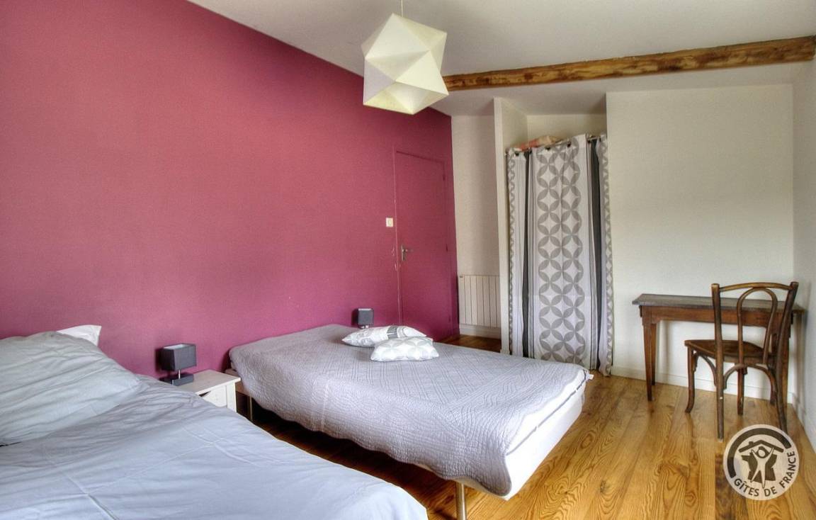 „La maison est vaste, pour accueillir au moins une dizaine de personnes. Chacun peut avoir un lit simple. 2 sanitaires et 2 salles de bain, ce qui est appréciable. Tout ce qu'il faut pour cuisiner sur place. Equipement pour bébé disponible mezzanine pour que des ados puissent s'isoler. La cheminée était bien appréciable pour cette période de mars. Environnement très calme et facile d'accès. Possibilité de visiter le château de Montmelas s'il s'agit d'un grand groupe (et la visite vaut le coup !). La propriétaire est très sympathique et flexible.“