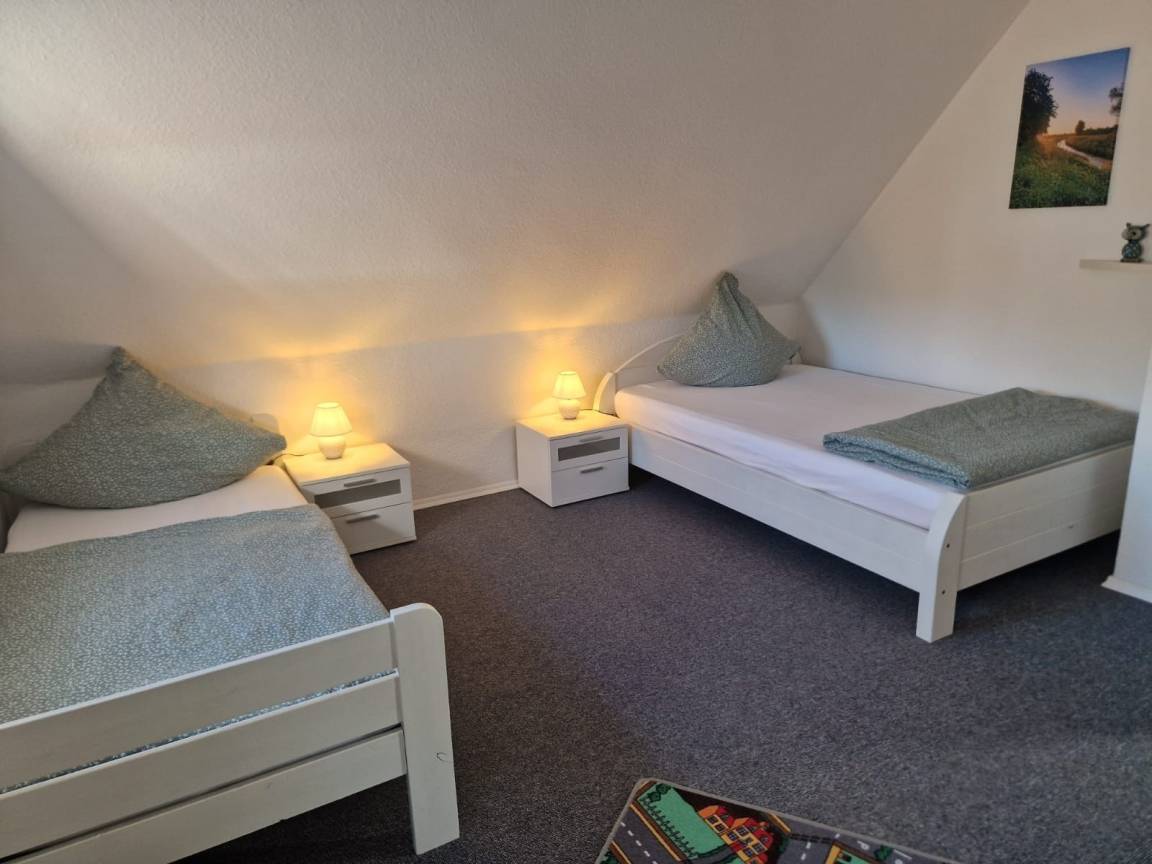 Im Obergeschoss befindet sich ein Schlafzimmer mit Doppelbett (180cm x 200cm) und ein Schlafzimmer mit zwei Einzelbetten (90cm x 200cm) und (140cm x 200cm). Und auf Wunsch kann auch ein Reisebett für Kleinkinder aufgestellt werden. So finden insgesamt bis zu 5 Personen bei uns Platz.