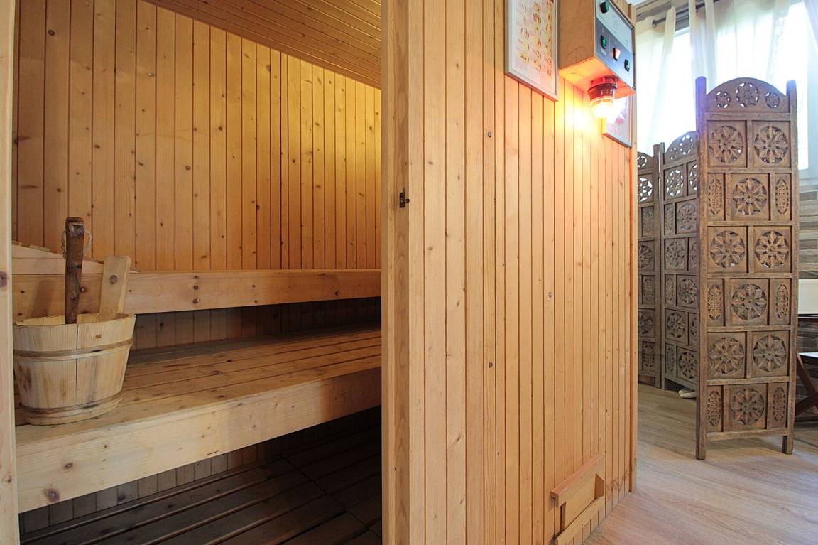Wellnessbereich: Sauna, Fitnessgeräte, vier Sonnenliegen, WiFi Internet.