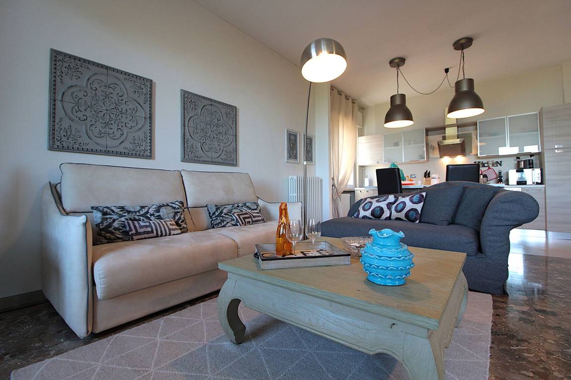 Wohnküche: gut ausgestattete Küche, Esstisch (Personen: 6), Spülmaschine, Mikrowelle, Herd, Ofen, Toaster, Doppel-Schlafsofa, WiFi Internet, Kinderhochstuhl, Ausgang auf die Terrasse.