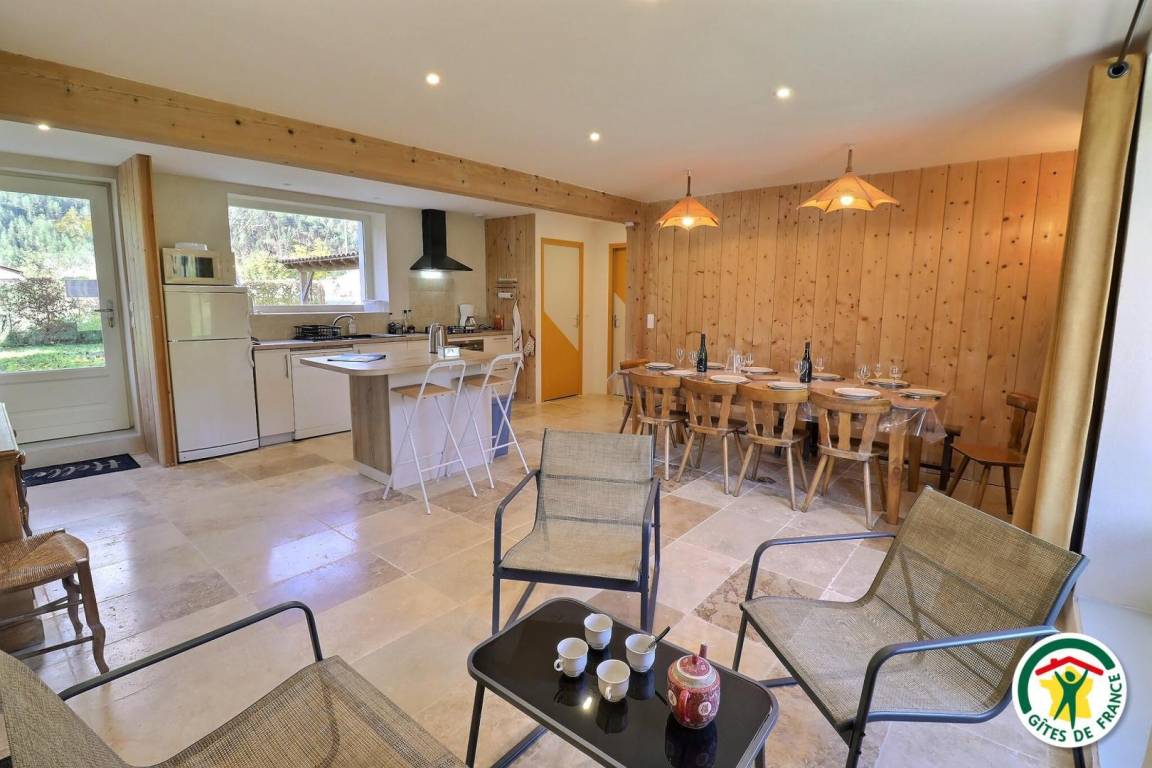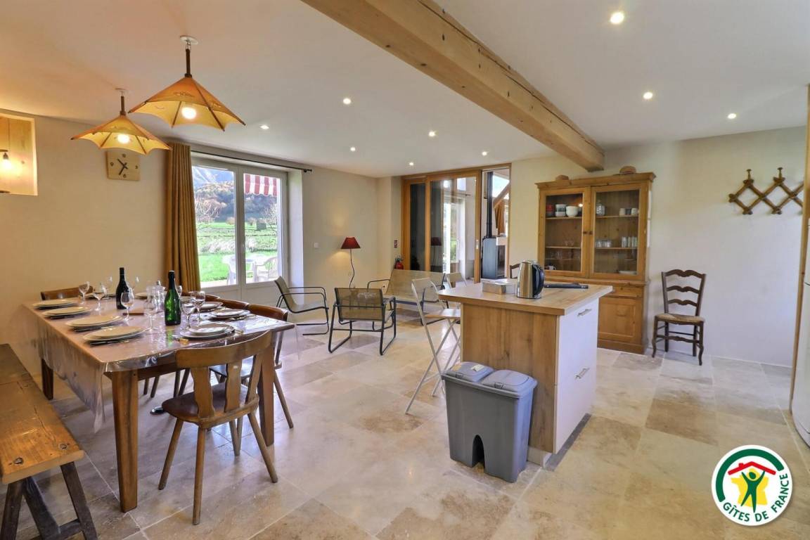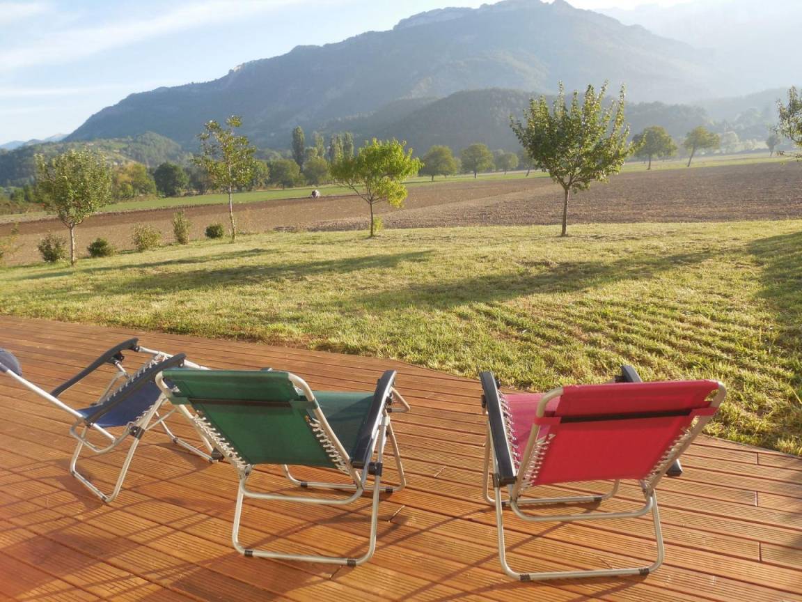 Im Erdgeschoss befinden sich ein Wohnzimmer mit einer zentralen Kücheninsel und Flügeltüren nach draußen, ein Schlafzimmer (4 Einzelbetten, darunter ein Etagenbett), ein Badezimmer mit zwei Duschen, ein separates WC und ein Ruheraum. Im Obergeschoss erwarten Sie drei Schlafzimmer für 2 bis 4 Personen (2 Einzelbetten, 3 Einzelbetten und 4 Einzelbetten) sowie ein Badezimmer mit WC. Draußen stehen Ihnen ein Parkplatz, ein 350 m² großer Garten und eine 75 m² große, nach Osten ausgerichtete Terrasse mit freiem Blick direkt auf den Berg Glandasse zur Verfügung. Bei schönem Wetter können Sie dank der Gartenmöbel und des Grills im Freien speisen. Entspannen Sie sich anschließend auf den Sonnenliegen. Das Ferienhaus ist an unser Haus angebaut, verfügt aber über einen separaten Eingang und ist nicht einsehbar. Wir freuen uns, Sie bei uns begrüßen zu dürfen und Ihnen unsere Region und unsere Lieblingsplätze zu zeigen. Wir befinden uns an der D93, der Weinstraße Clairette de Die