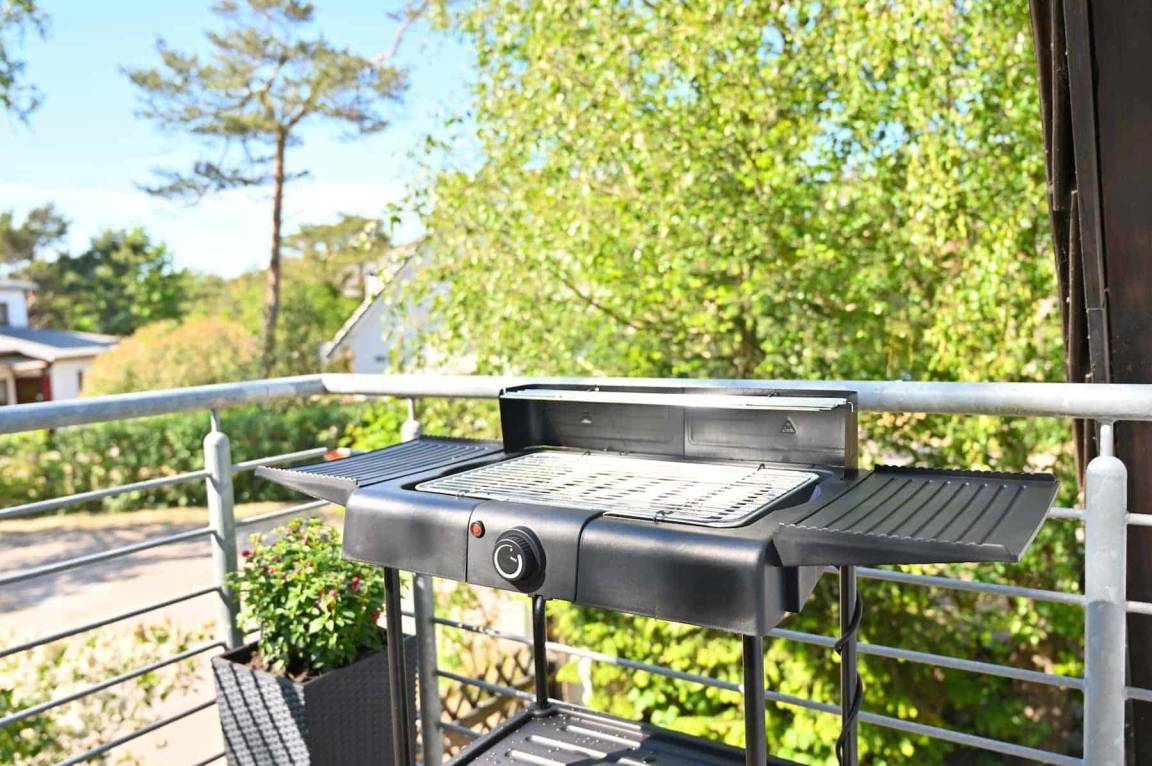 ・Möbelierter sonniger Balkon mit Ausblick auf den Küstenwald