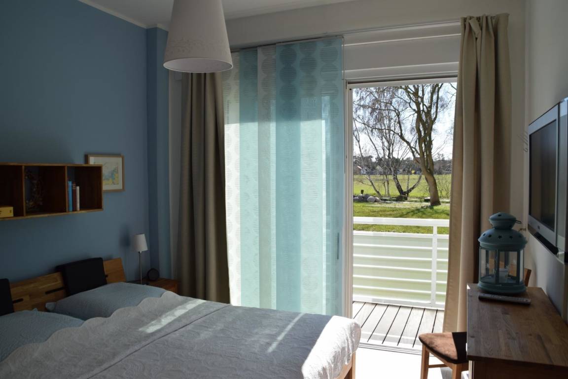 Die im Mai 2014 fertiggestellte Anlage besteht aus einem Haupthaus und 5 Strand- villen. Unsere Wohnung befindet sich im Erdgeschoss des Haupthauses, hat einen großen, sonnigen Südbalkon und besteht aus einem Wohnraum mit Küchenzeile, einem Schlafzimmer für 2 Personen, Flur und Bad mit Dusche. Ein Abstellraum für Fahrräder sowie ein Pkw-Stellplatz sind ebenfalls vorhanden.