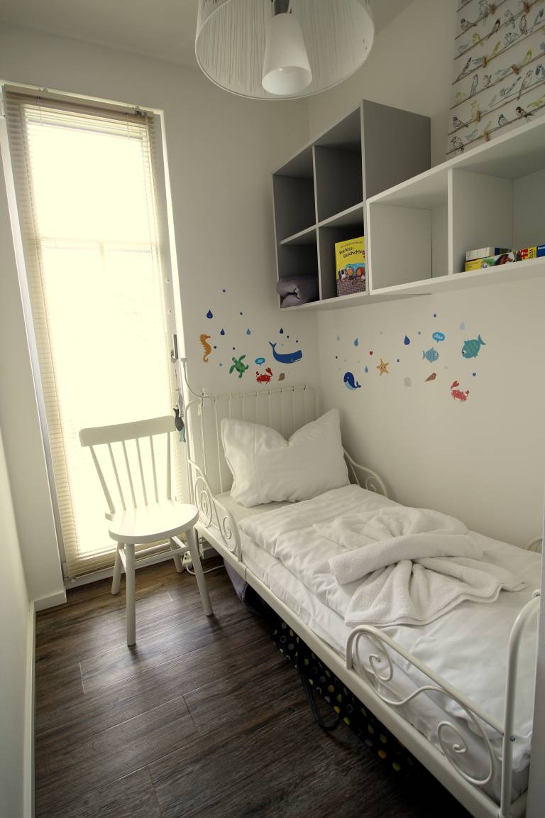 - ein kleiner zusätzlicher Raum mit langem Fenster als Schlafbereich inkl. Schiebetür. Das Bett ist für ein Kind bis 8 Jahre geeignet.