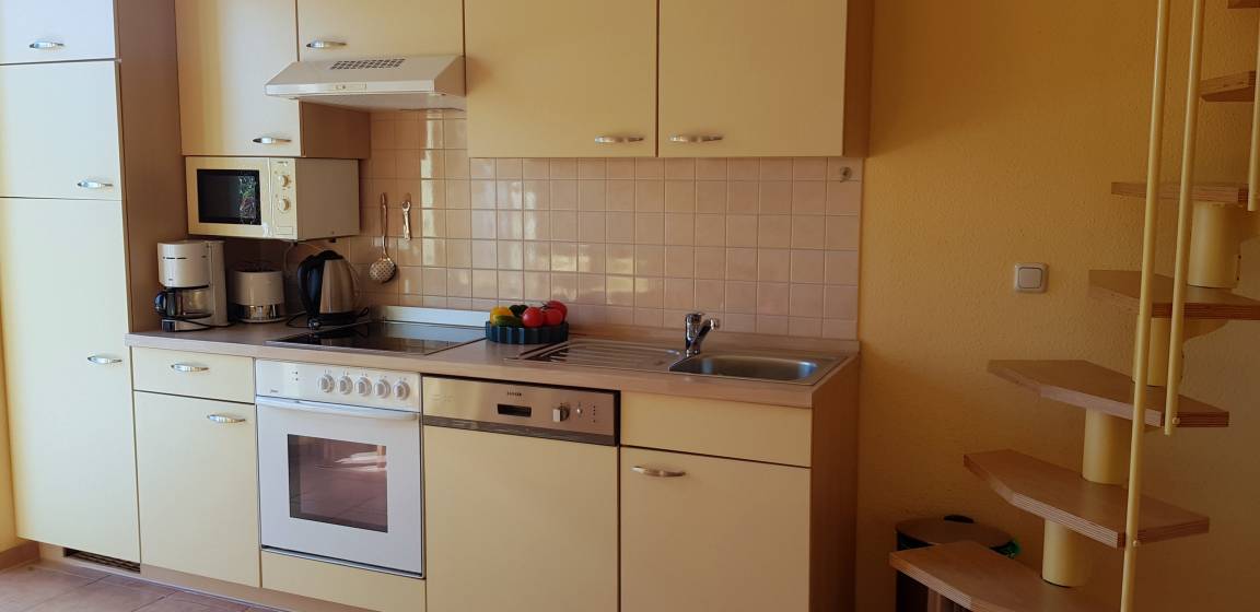 Es erwartet Sie eine gemütliche Maisonette Ferienwohnung mit Terrasse, einem Schlafzimmern und einer Schlafgalerie. Die Ferienwohnung bietet Ihnen auf einer Wohnfläche von ca.35 m² ausreichend Platz für 2 Erwachsene Personen und zwei Kinder.