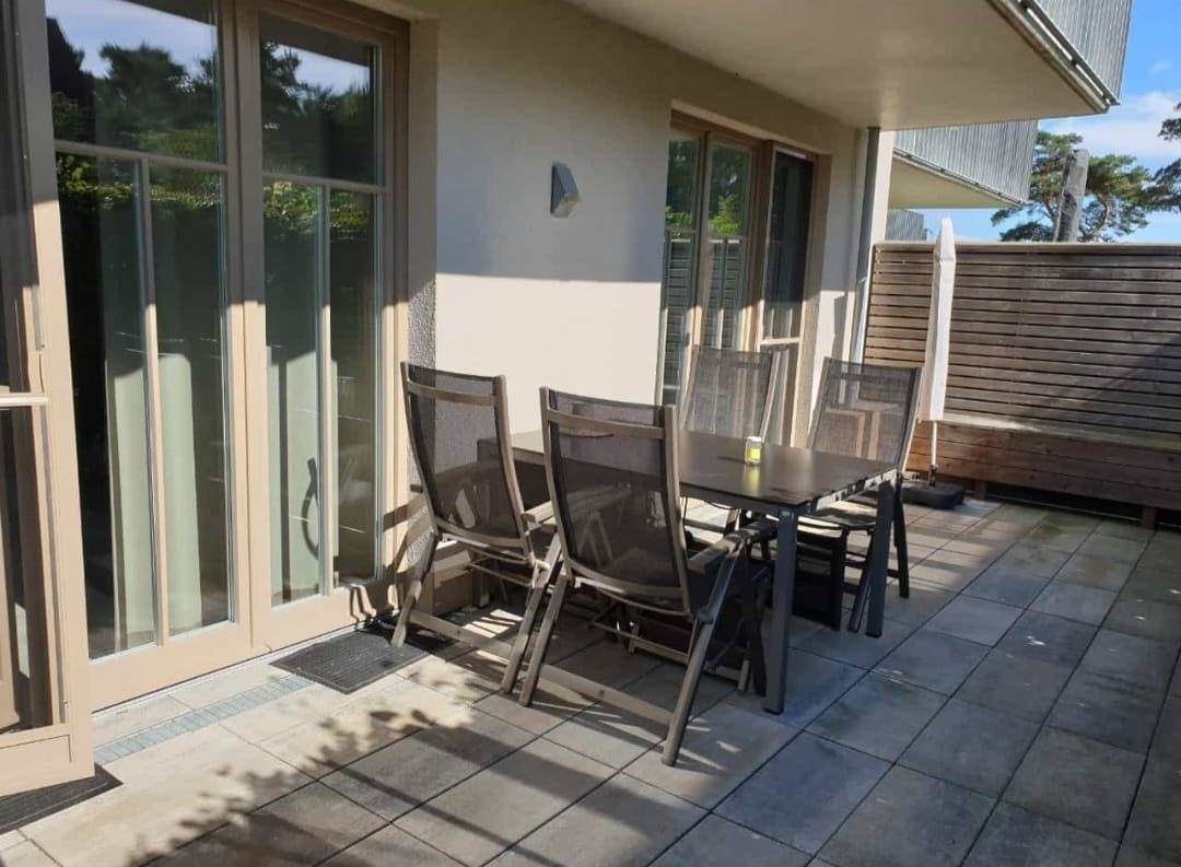 Auf der Terrasse können Sie die Tage genießen, oder ausklingen lassen und sich entspannen. Die entsprechenden Gartenmöbel stehen selbstverständlich zu Ihrer Verfügung. Zugehörig zur Wohnung ist ein PKW-Stellplatz.