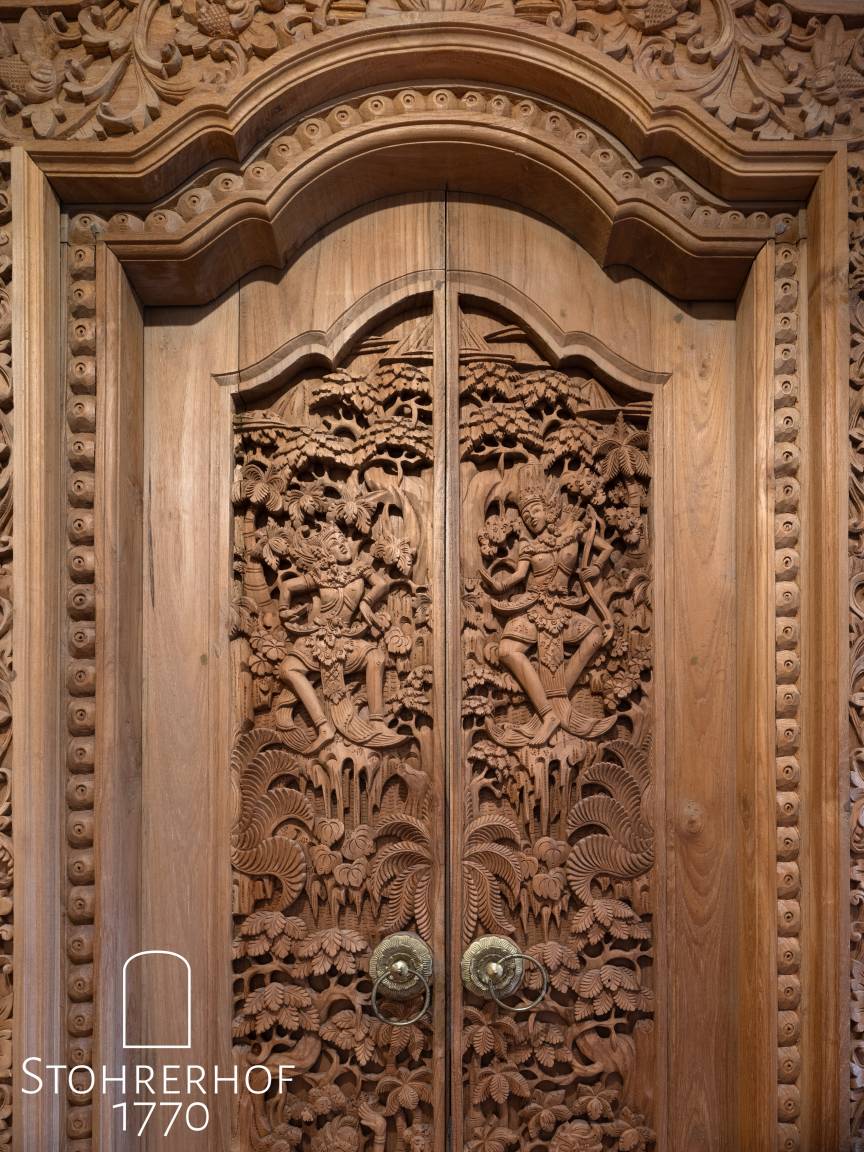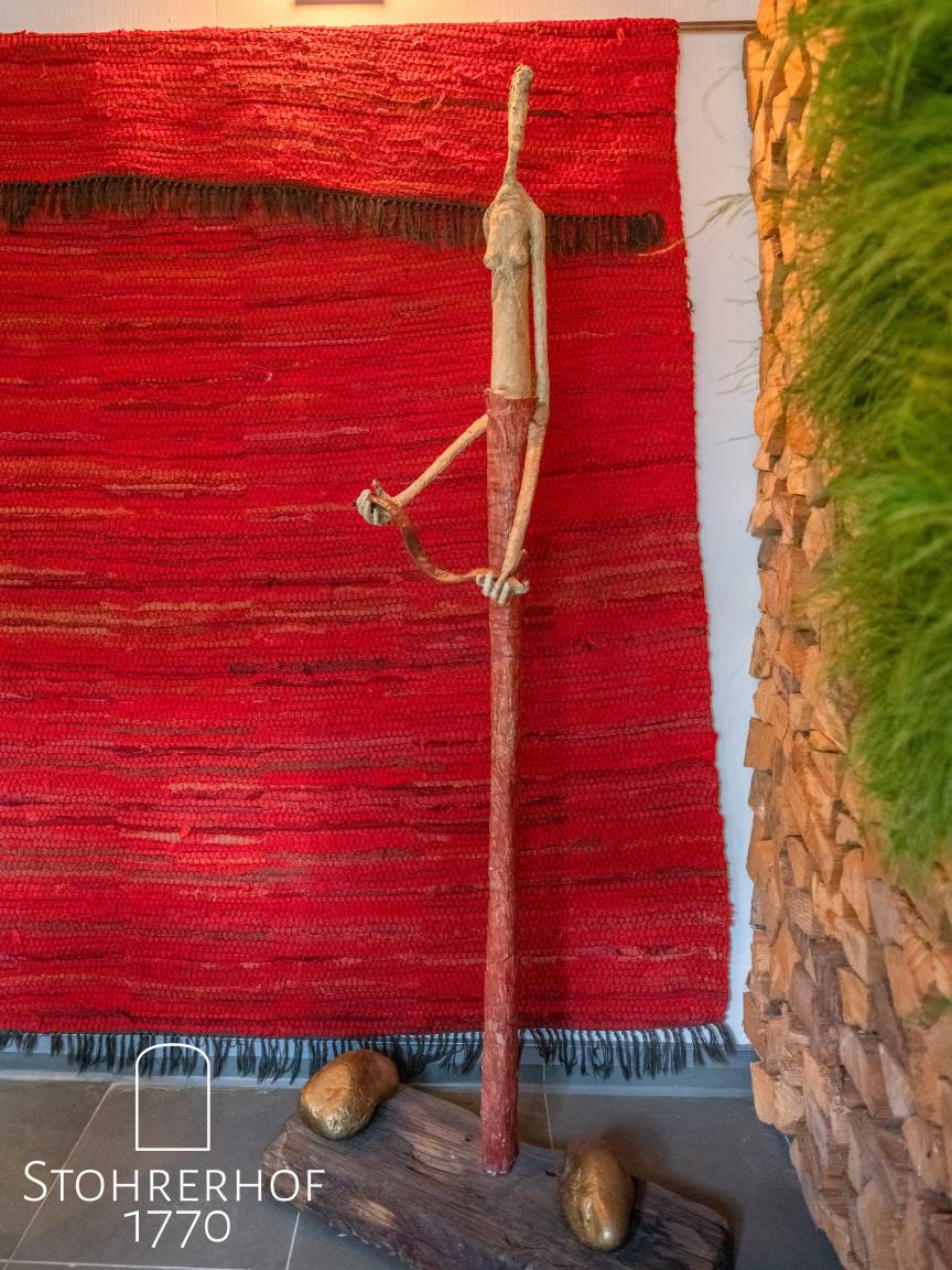 Der großzügige Flur (22qm) im Erdgeschoß, bietet direkten Zugang zu allen Räumen. Neben der Garderobe (5qm) inkl. Schuhputzmaschine können Sie direkt in die Bauernstube (28qm) mit Grundofen, Jukebox, Spielen und einem großen Stubentisch (für bis 12 Personen) einkehren. Wir haben besonders Wert auf den historischen Rückbau dieses Raumes aus dem 18 Jh. gelegt.