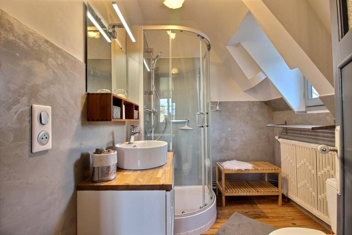 „Beautiful apartment, located right in the heart of historic Dinan. Despite being so central it is incredibly peaceful - we awoke each morning to the wonderful sound of green woodpeckers calling !We found it the perfect base for our holiday, allowing us to enjoy the relaxed and uncrowded atmosphere of Dinan and its surrounding countryside, but still be within easy reach of the coast and major attractions. Thank you Véronique for being a super host and letting us share your wonderful property, we hope to visit again soon!“