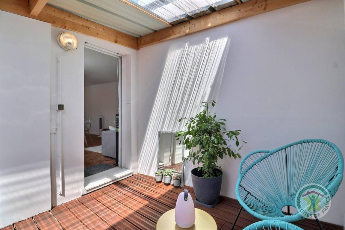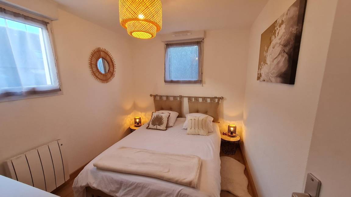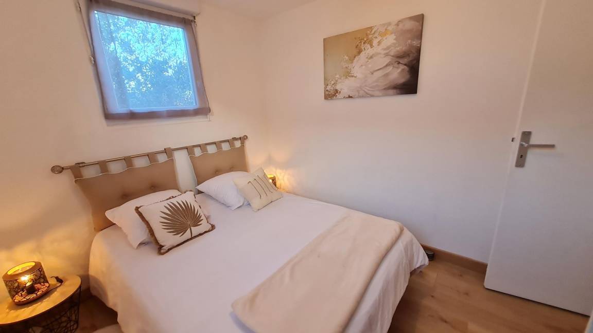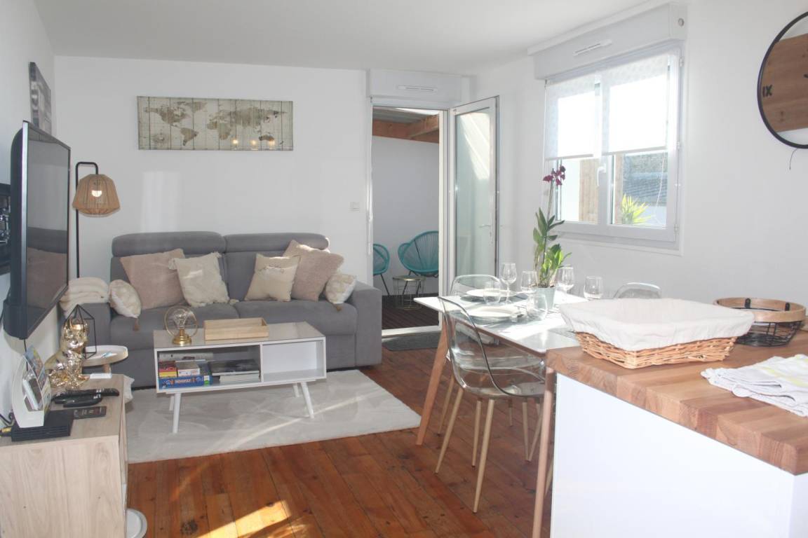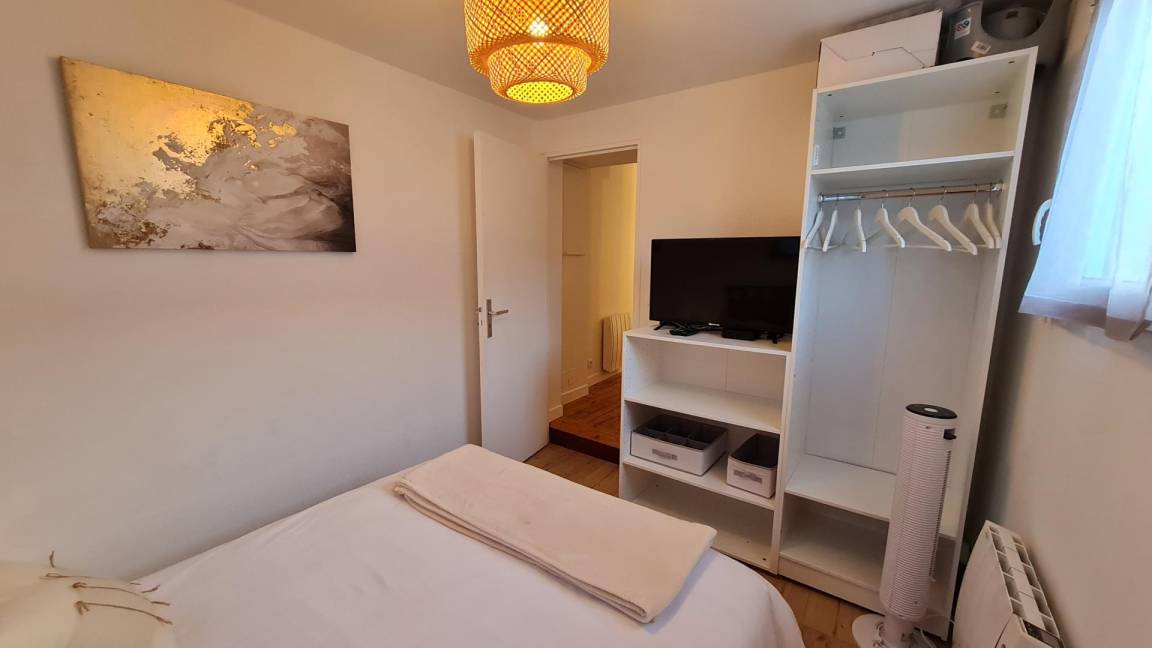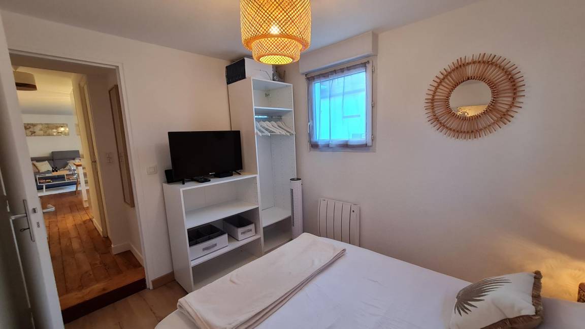 Im ersten Stock eines kleinen Kollektivs mit Zugang über eine Außentreppe: eine Veranda, ein Wohnzimmer mit Küche, Essbereich und Wohnzimmer mit einem hochwertigen Schlafsofa für zwei Betten in 140X190, ein Schlafzimmer mit einem 140X190-Bett und ein Badezimmer mit WC. Kostenlose Parkplätze an der Straße.