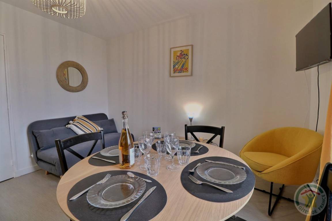 „Appartement fonctionnel et très bien situé avec des places de stationnement gratuites dans la rue et rues adjacentes. La chambre est située sur cour, le lit est confortable. Le logement est conforme à la description, mais le confort du mobilier d'entrée de gamme pourrait être amélioré. Le logement correspond davantage à l’esprit d’un Airbnb qu’à celui d’un hébergement labellisé Gîtes de France.“