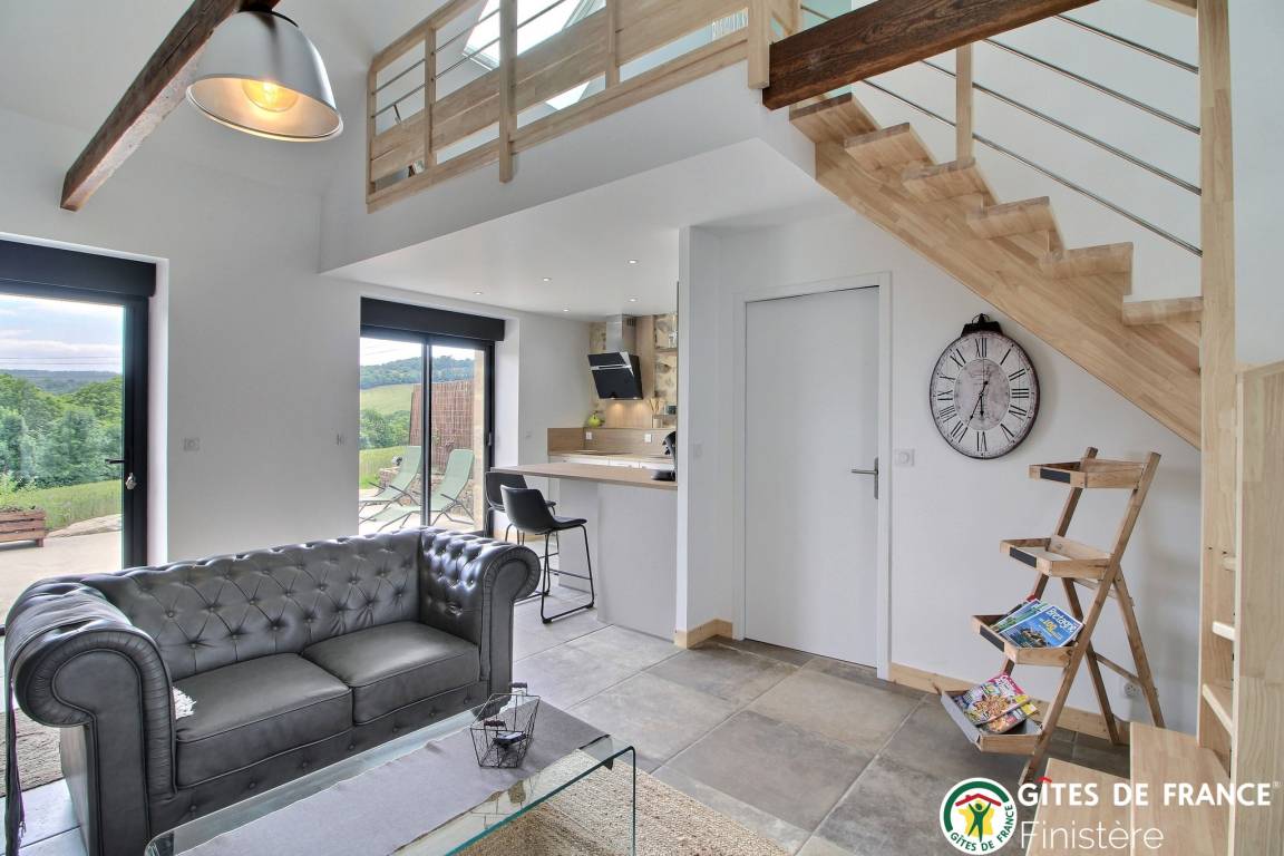„Nous avons été très bien accueillis par des propriétaires soucieux de notre confort. Le gîte est cosy avec une très belle vue sur les monts du Ménez Hom. L’environnement est très calme et la région magnifique. La prise pour véhicule électrique est un plus appréciable pour les personnes concernées“