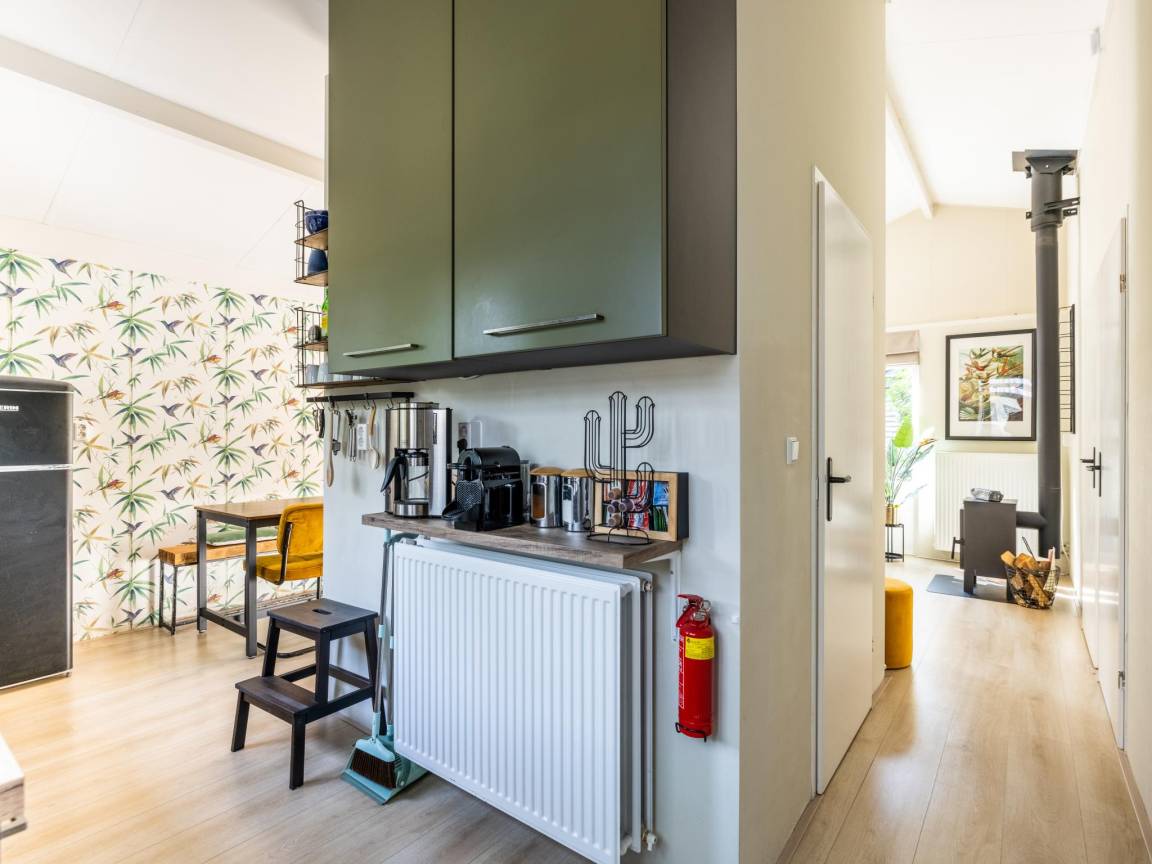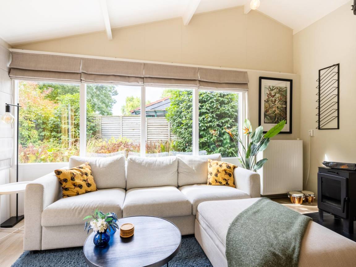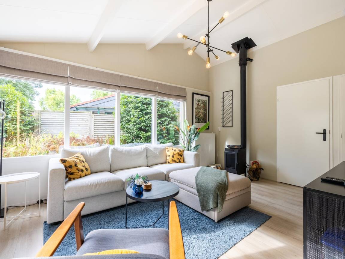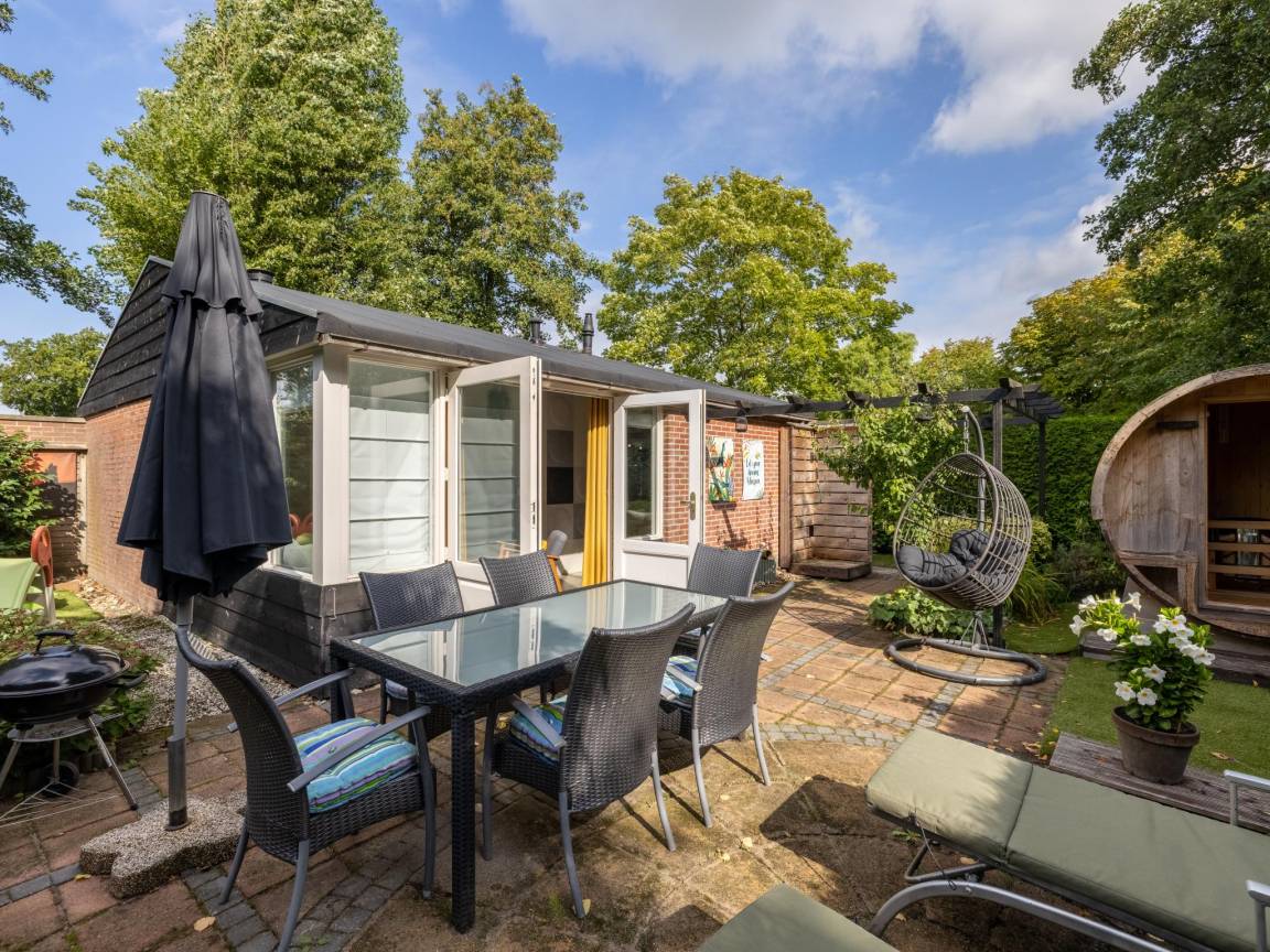 Hausbeschreibung : Willkommen in diesem gemütlichen Ferienhaus für 5 Personen in Küstennähe! Kuscheln Sie sich an den Kamin, entspannen Sie sich in Ihrer privaten Sauna oder genießen Sie draußen den überdachten Sitzbereich mit Loungesofa und Schaukelstühlen. Das Haus liegt in einem kleinen, gemütlichen Park mit einem gemütlichen Restaurant um die Ecke. Mit drei Schlafzimmern, einem gemütlichen Wohnzimmer und einer voll ausgestatteten Küche ist dies der richtige Ort für Ruhe, Komfort und sonnige Urlaubstage!