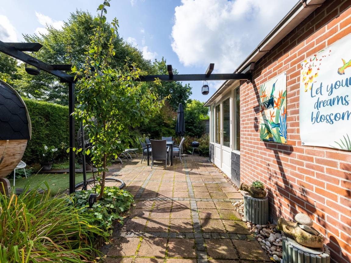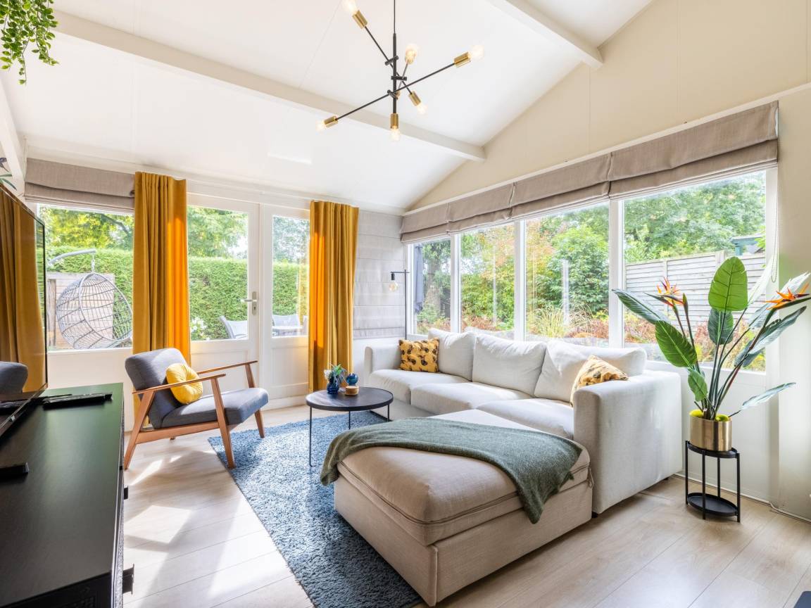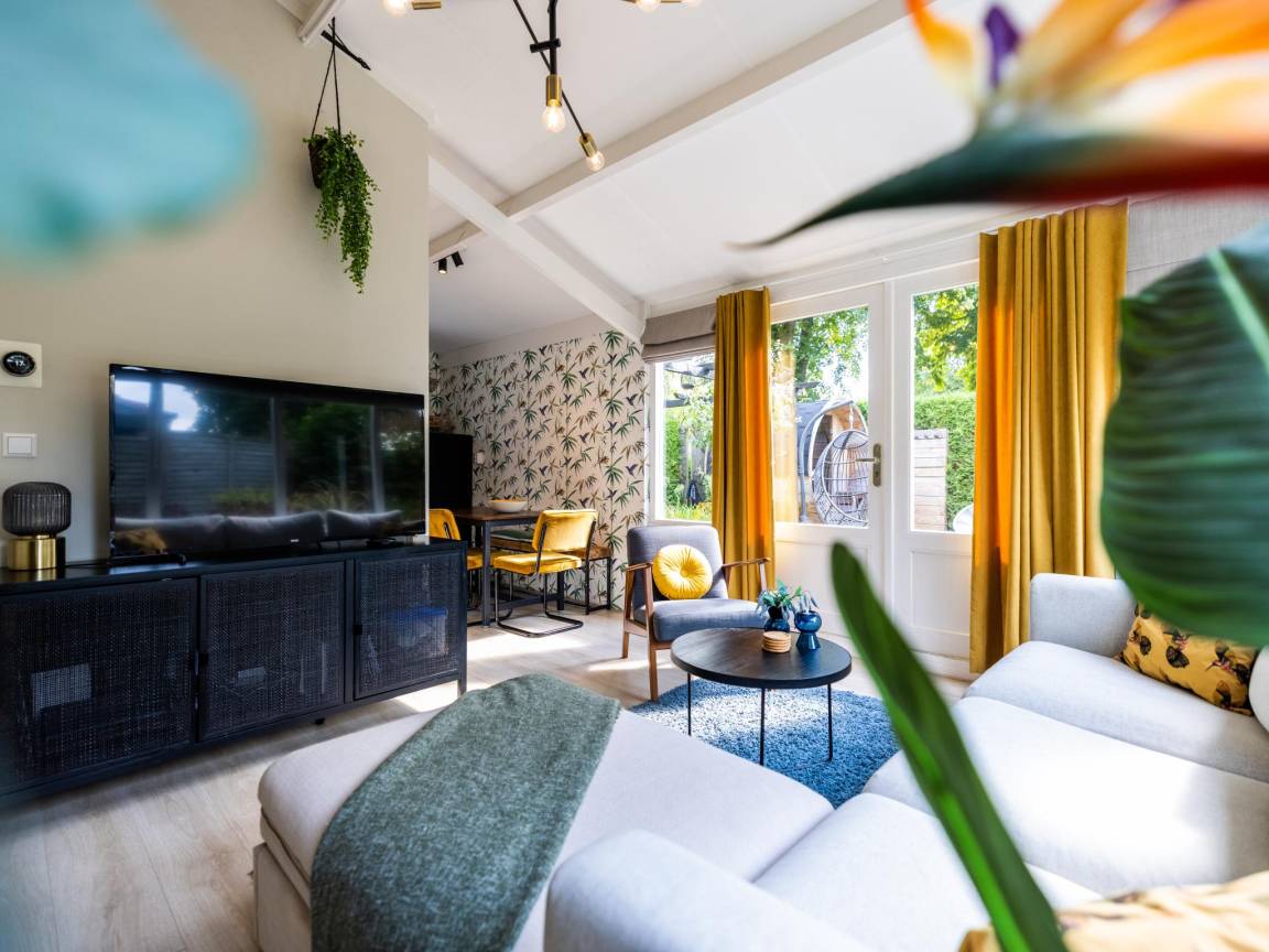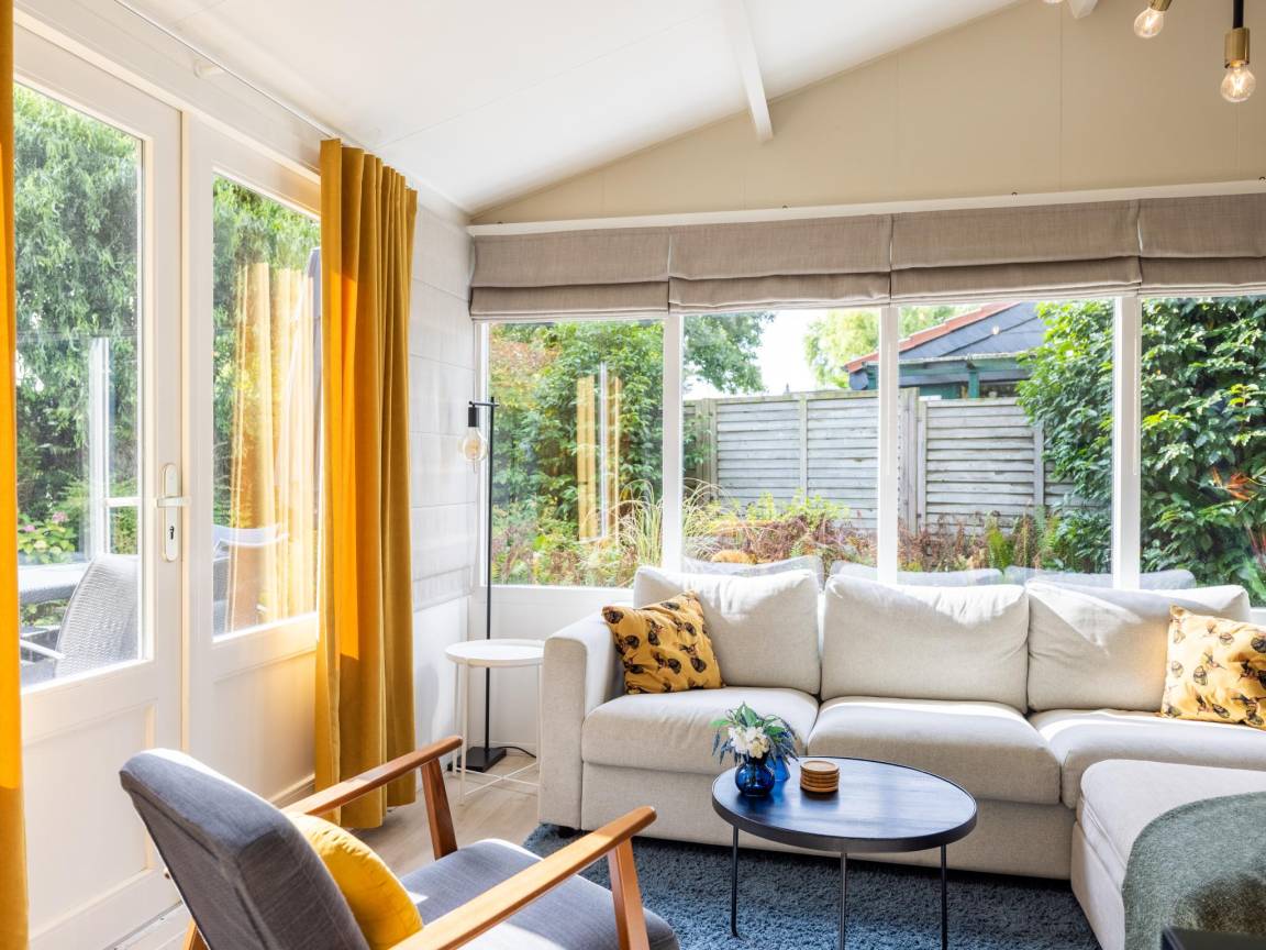 Hausbeschreibung : Willkommen in diesem gemütlichen Ferienhaus für 5 Personen in Küstennähe! Kuscheln Sie sich an den Kamin, entspannen Sie sich in Ihrer privaten Sauna oder genießen Sie draußen den überdachten Sitzbereich mit Loungesofa und Schaukelstühlen. Das Haus liegt in einem kleinen, gemütlichen Park mit einem gemütlichen Restaurant um die Ecke. Mit drei Schlafzimmern, einem gemütlichen Wohnzimmer und einer voll ausgestatteten Küche ist dies der richtige Ort für Ruhe, Komfort und sonnige Urlaubstage!