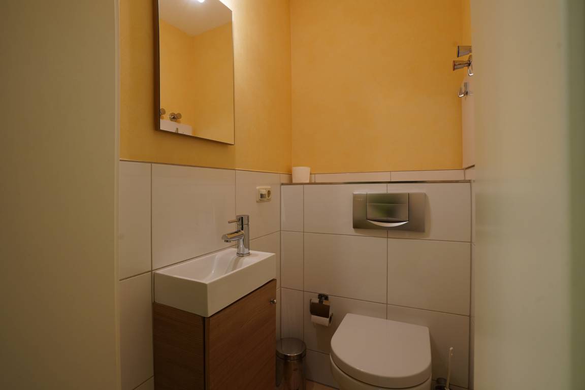 Zu den Annehmlichkeiten gehören zwei moderne Duschbäder im Obergeschoss und im Dachgeschoss sowie ein Gäste-WC im Flur. Ein eigenes Gartengrundstück mit gemauertem Kamin lädt zum Entspannen im Freien ein und vervollständigt das Urlaubserlebnis in der Seeufervilla.