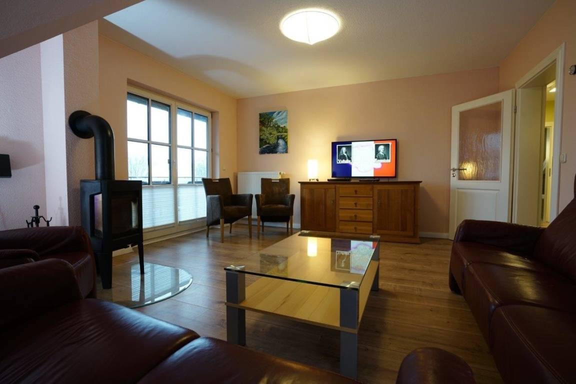 Erleben Sie pure Entspannung in dieser geräumigen Wohnung mit 140 qm Wohnfläche und atemberaubendem Seeblick. Direkt am Strand des Ferienorts Flessenow am Schweriner See gelegen, bietet sie einen unvergleichlichen Blick auf das Wasser und die vorbeiziehenden Boote. Genießen Sie gemütliche Stunden auf der großzügigen Terrasse mit komfortablen Sitzmöbeln und Liegen am Seeufer. Die Villa verfügt über vier Schlafzimmer mit insgesamt acht Betten, darunter zwei Schlafzimmer mit Doppelbetten und im Dachgeschoss ein Zimmer mit einem Doppelbett und einem Zimmer mit zwei Einzelbetten, die bei Bedarf zusammengestellt werden können.