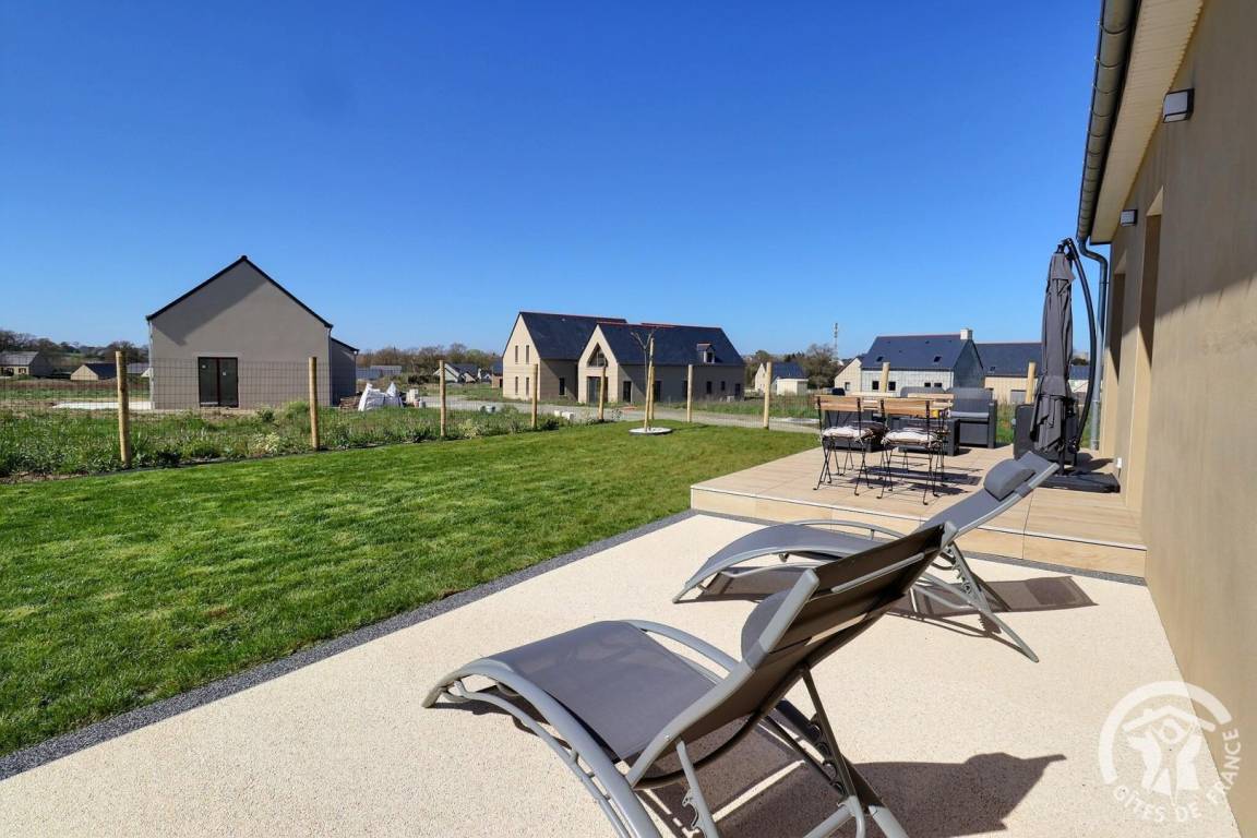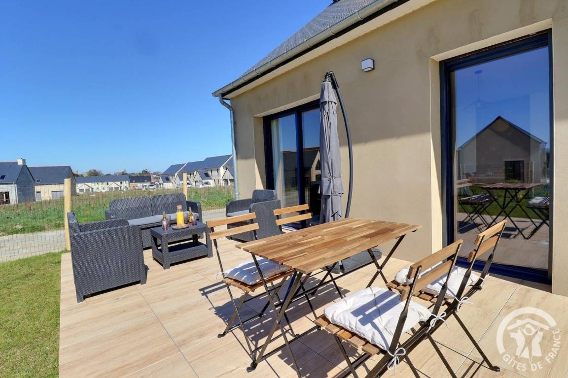 Draußen erwartet Sie ein umzäunter Garten mit einer großen, möblierten Terrasse: Gartenmöbel, Liegestühle, Entspannungsbereich und Grill sorgen dafür, dass Sie gesellige Momente im Freien genießen können.