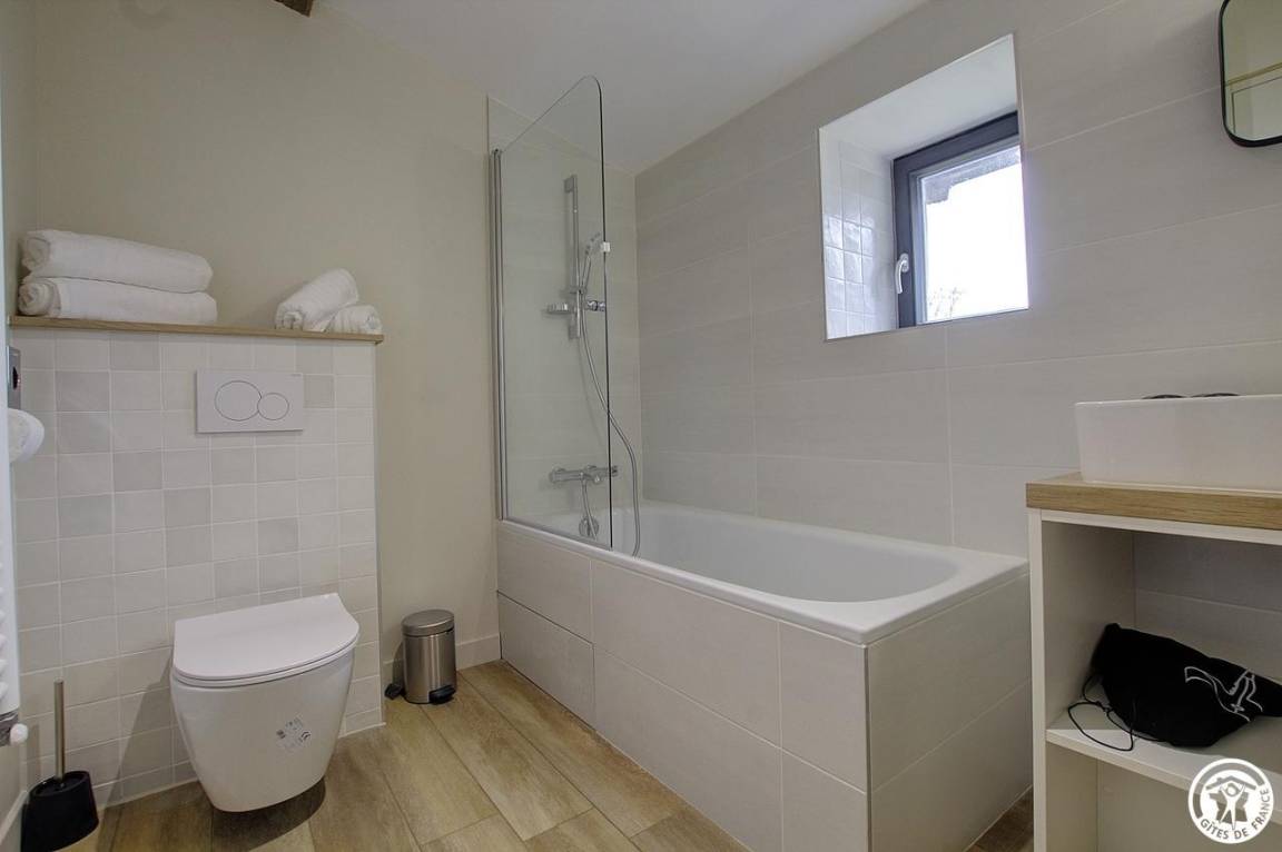 „Nous avons passé un très agréable week-end dans un cadre très reposant et une bâtisse superbement rénovée. Les 2 gites permettent un peu d indépendance pour ceux qui préfèrent plus de calme et chaque chambre a sa salle de bain, très appréciable quand on est un peu nombreux (16 adultes et 5 enfants).“