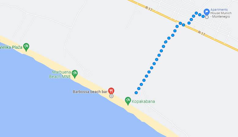 In Donji Stoj (Gemeinde Ulcinj), 1000 Meter bzw. 3-Autominuten vom Strand Velika Plaza (Long Beach) entfernt, liegt das House Munich. Das Apartment im Obergeschoss ist ruhig gelegen in einer Wohnsiedlung mit Nachbarn aus Deutschland, Österreich, Schweiz, Luxemburg und natürlich Montenegro. Das Erdgeschoss wird teilweise nur von Privat bewohnt. Der nächste Flughafen ist der 80 km vom House Munich entfernte Flughafen Podgorica.