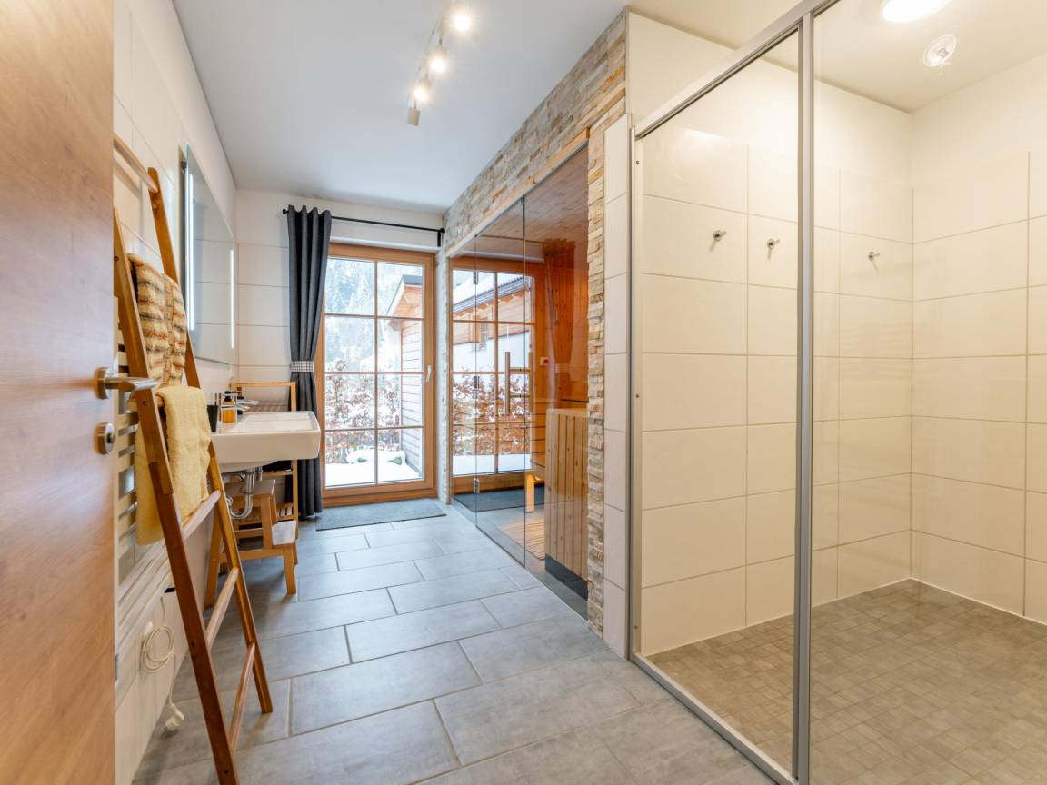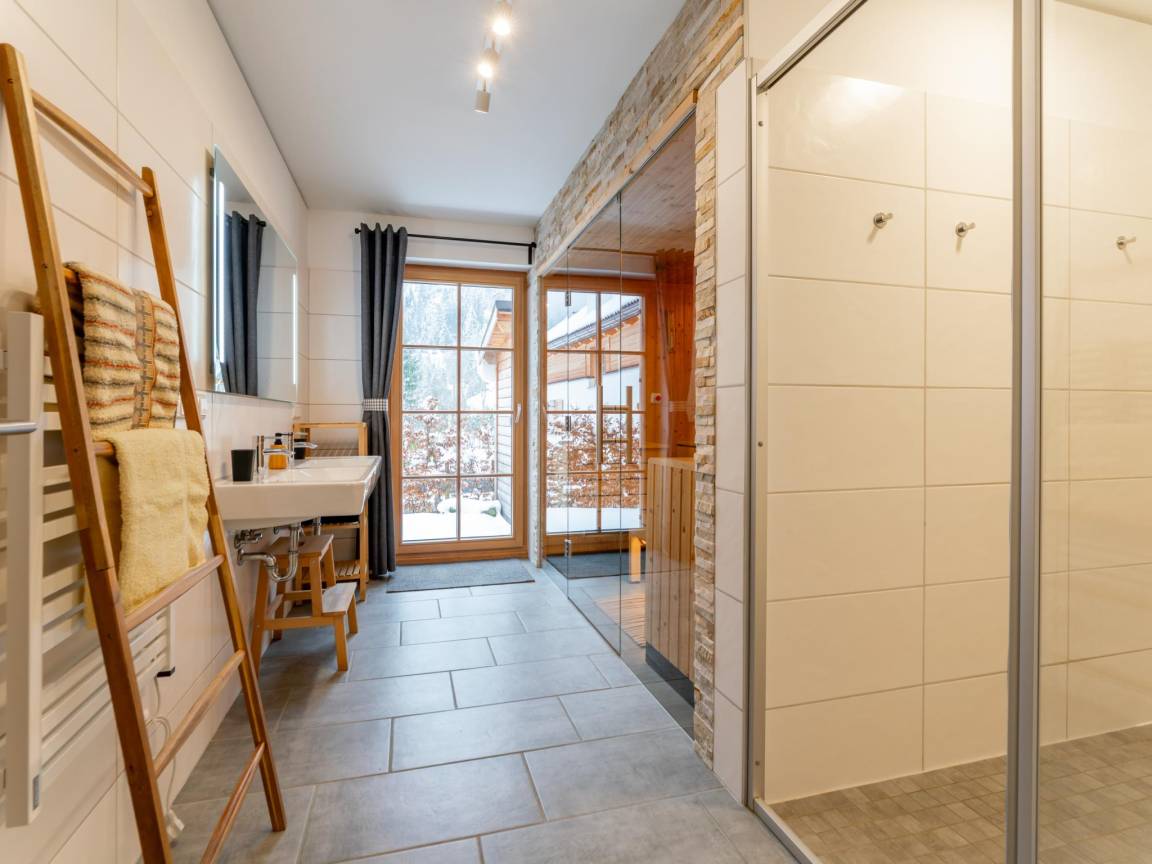 Außendusche. In Harmonie mit der Natur gebaut, bietet es alpinen Charakter mit viel Privatsphäre und