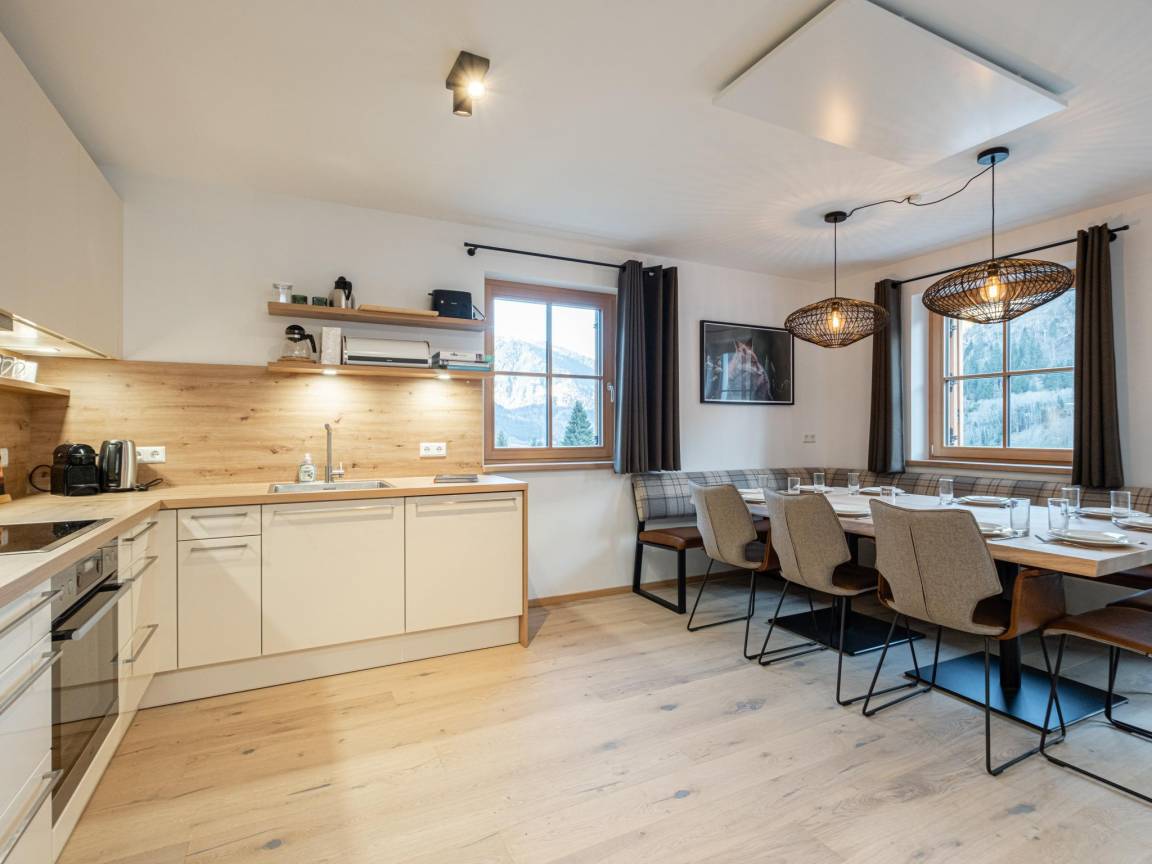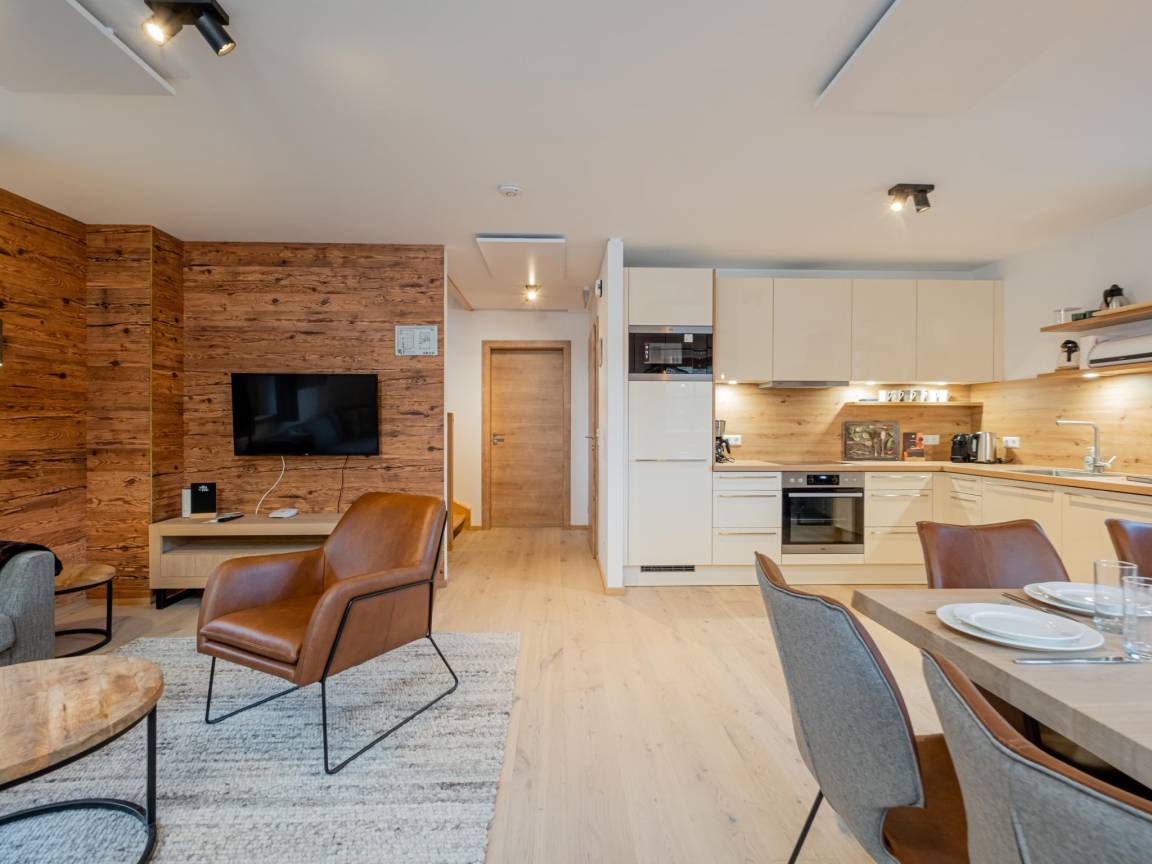 Layout : Parterre: Eingang mit Toilette , offene Küche mit Wasserkocher, Toaster, Kochherd(4 Kochplatten, Induktion), Kaffeemaschine(cups, Filter), Backofen, Mikrowelle, Geschirrspüler, Kühl-/Gefrierkombination , Wohn/Esszimmer mit TV(smart TV), Esstisch(10 Personen), Sitzecke, kabelloses Musiksystem , Badezimmer(Fußbodenheizung) mit Dusche, Sauna, 2x Waschbecken , Abstellraum mit Wäschetrockner, Waschmaschine, Skischuhheizung