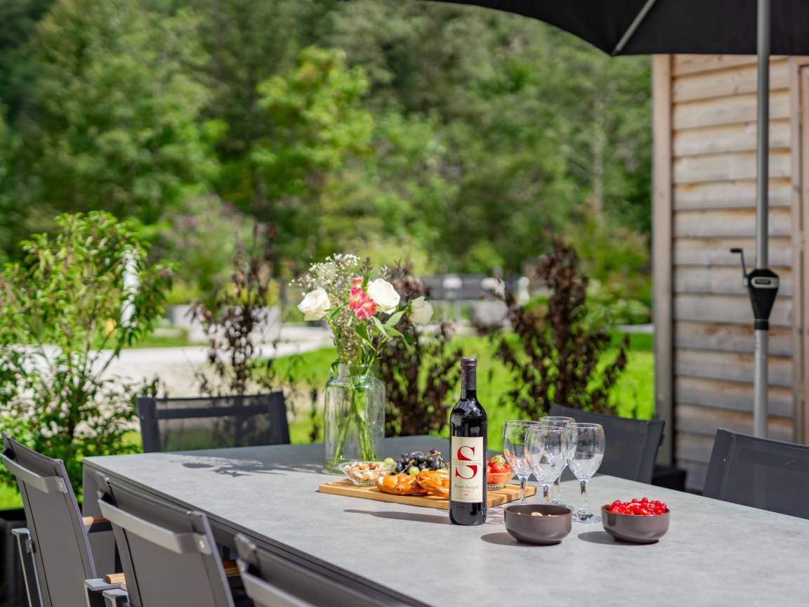 Hausbeschreibung : Genießen Sie eine Privatsphäre und eine stimmungsvolle Einrichtung im alpinen Stil in diesem luxuriösen Chalet in einem kleinen Park. Beginnen Sie den Tag mit einem Frühstück auf einer der beiden Terrassen und entspannen Sie am Abend in der eigenen finnischen Sauna.