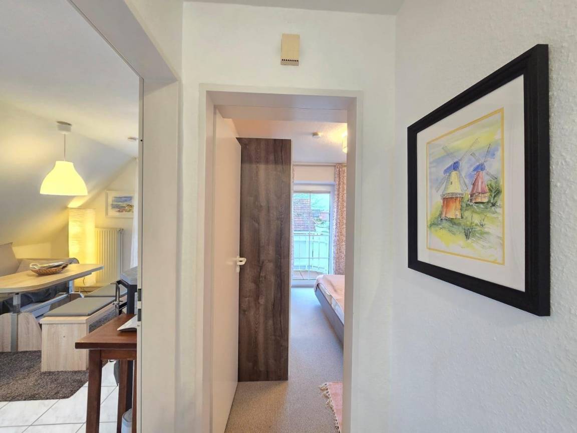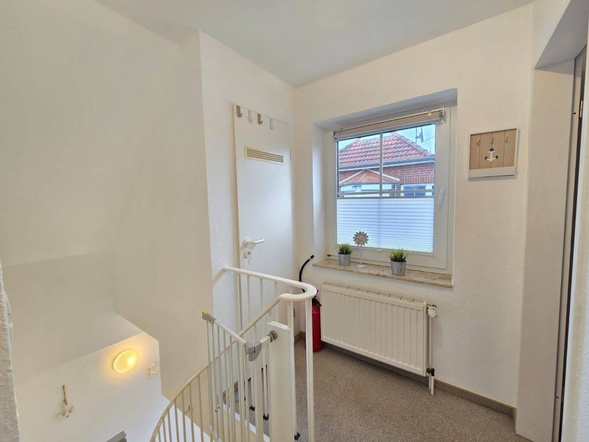Zusätzlich befindet sich im Außenbereich ein gemeinschaftlich nutzbarer Balkon, der zum Entspannen einlädt. Diese liebevoll eingerichtete Wohnung vereint moderne Ausstattung und gemütliches Design und ist hervorragend für Paare, kleine Familien oder Freunde geeignet, die einen erholsamen Urlaub an der Nordsee verbringen möchten.