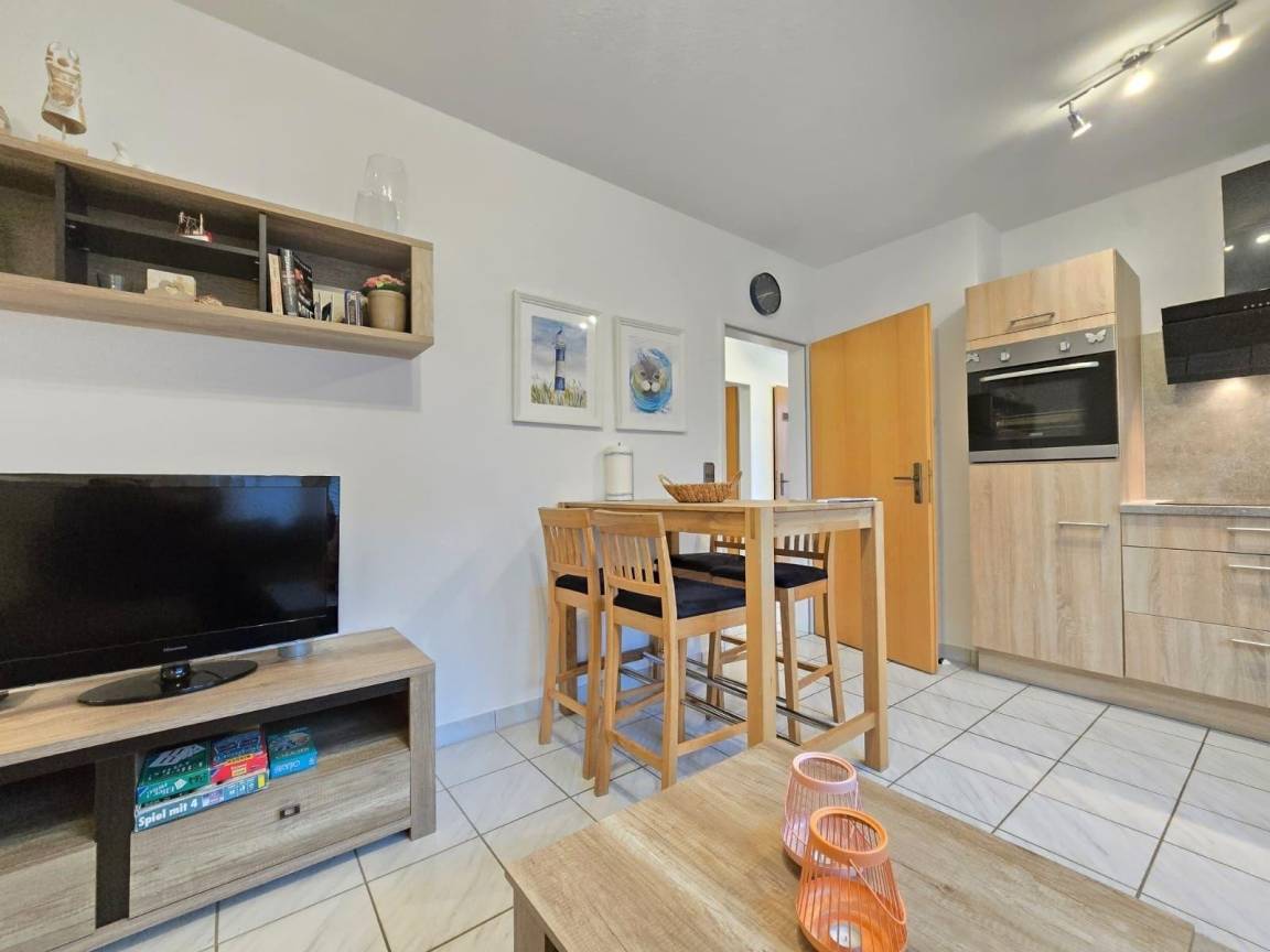 Die moderne Ferienwohnung in Neßmersiel bietet Platz für bis zu vier Personen und zeichnet sich durch ihre stilvolle Einrichtung und großzügige Raumaufteilung aus. Der lichtdurchflutete Wohnbereich lädt zu entspannten Stunden ein und eignet sich ideal für gemeinsames Essen oder geselliges Beisammensein. Die Wohnung verfügt über eine gut ausgestattete Küche, die zur Selbstverpflegung einlädt. Auf Wunsch können Bettwäsche und Handtücher gegen Aufpreis hinzugebucht werden. Die gesamte Ausstattung sorgt für ein komfortables Wohngefühl, während die hundefreundliche Umgebung und der vollständig eingezäunte Garten für zusätzliche Sicherheit und Freiheit sorgen. Die Lage der Wohnung ist ruhig und zentral, mit schnellem Zugang zu Stränden, Wanderwegen sowie Einkaufsmöglichkeiten und gastronomischen Angeboten in der Nähe.