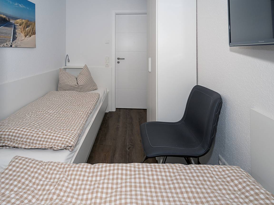 Die Wohnung verfügt über 2 separate Schlafzimmer. Eines davon mit einem hochwertigen Doppelbett ausgestattet, das andere, mit 2 Einzelbetten, ist auch wunderbar als Kinderzimmer nutzbar.