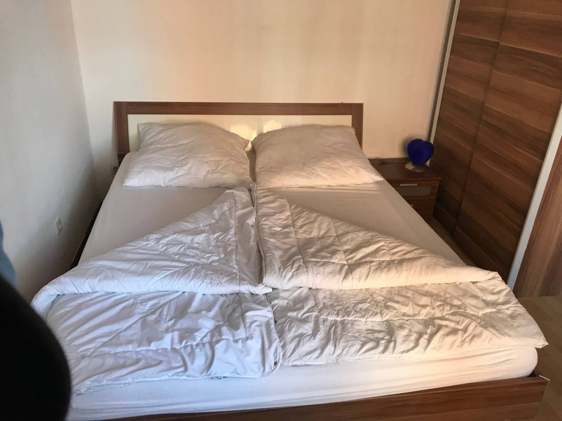 Das Schlafzimmer hat ein Doppelbett (2 x 80 x 200 cm).