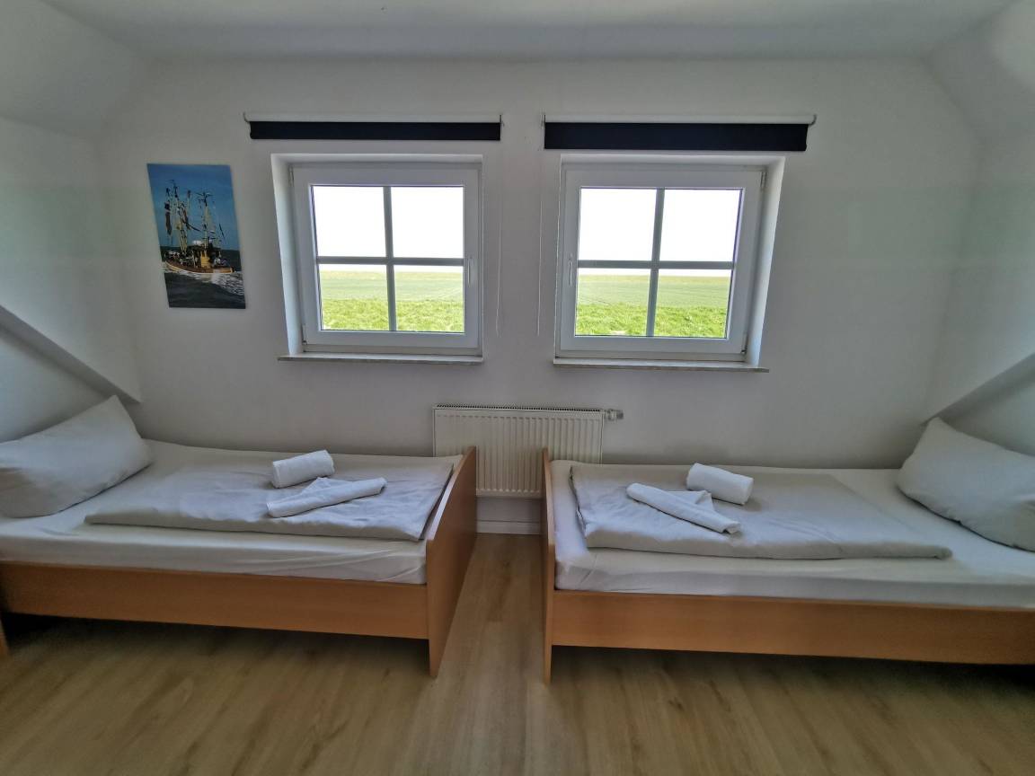 Das Ferienhaus Baltrumkieker liegt in Neßmersiel direkt am alten Deich und bietet einen unverbauten Blick auf das Wattenmeer und die vorgelagerten ostfriesischen Inseln. In nur fünf Gehminuten sind die Sauna „WellnessOase" sowie der Dorfkern mit Einkaufsmöglichkeiten, Restaurants und Teestuben zu erreichen. Der Badestrand ist nach etwa 20 Minuten Fußweg erreichbar, und für die Erkundung der Umgebung stehen ein Fahrrad- und Kartverleih in unmittelbarer Nähe zur Verfügung. Die Lage verbindet naturnahe Erholung mit einer guten infrastrukturellen Anbindung. Direkt vor dem Haus sind ausreichend Parkplätze vorhanden, was eine unkomplizierte Anreise ermöglicht. Der großzügige Garten und die Süd-Terrasse laden zum Entspannen im Freien ein und sorgen für einen angenehmen Aufenthalt in einer malerischen Küstenregion.