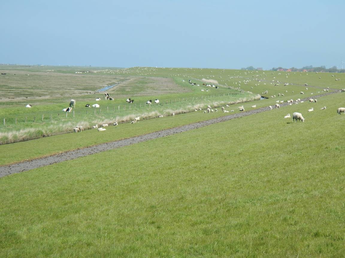 In dieser 90qm große Ferienwohnung in der oberen Etage, die genügend Platz für 5 Gäste bietet, stehen Ihnen neben einer voll ausgestatteten Küche mit Sitzecke, ein Wohnzimmer, einen Elternschlafzimmer, sowie zwei Kinderzimmer auch ein geräumiges Bad mit Toilette und Dusche zur Verfügung. Die große Dachterrasse , die Sie bequem über die Küche erreichen können, bietet einen wunderschönen Ausblick auf das Dornumer Land. Die vorhandenen Gartenmöbel laden zum Erholen und Verweilen ein. Ein Hund ist auch hier jederzeit willkommen.