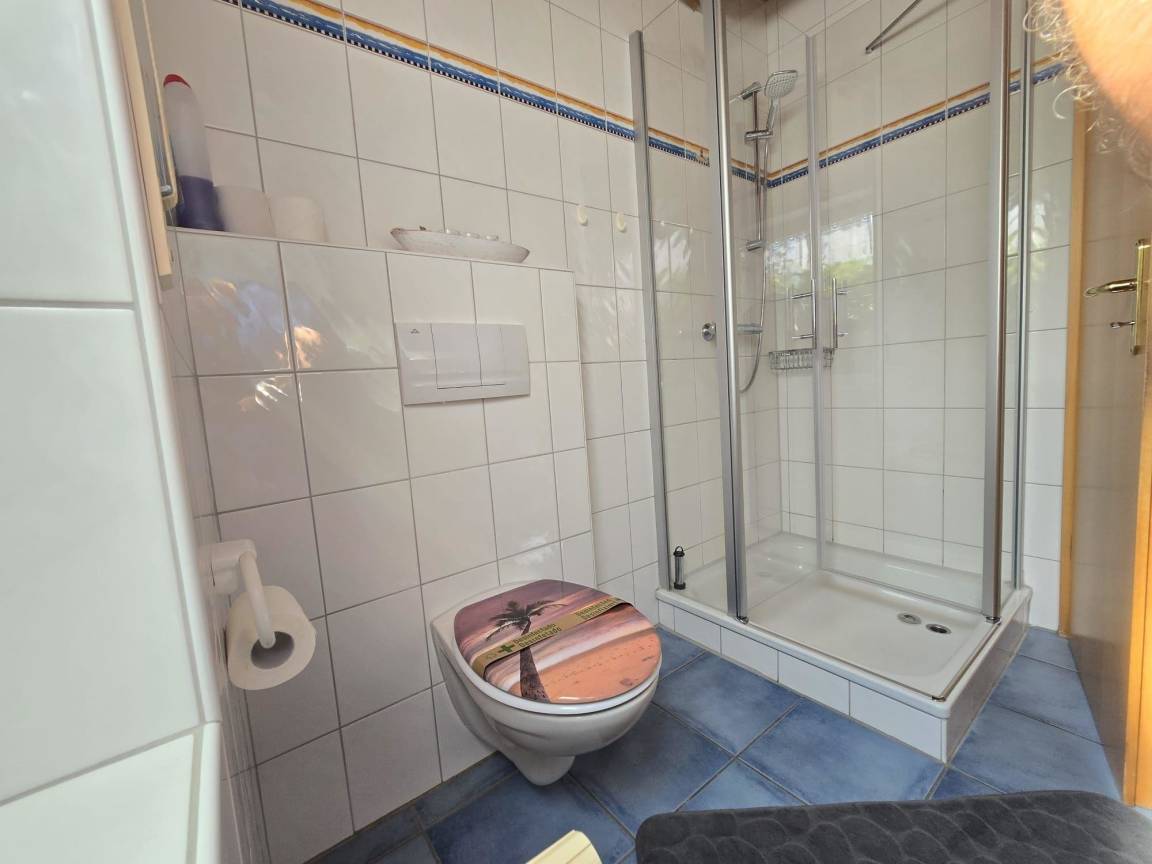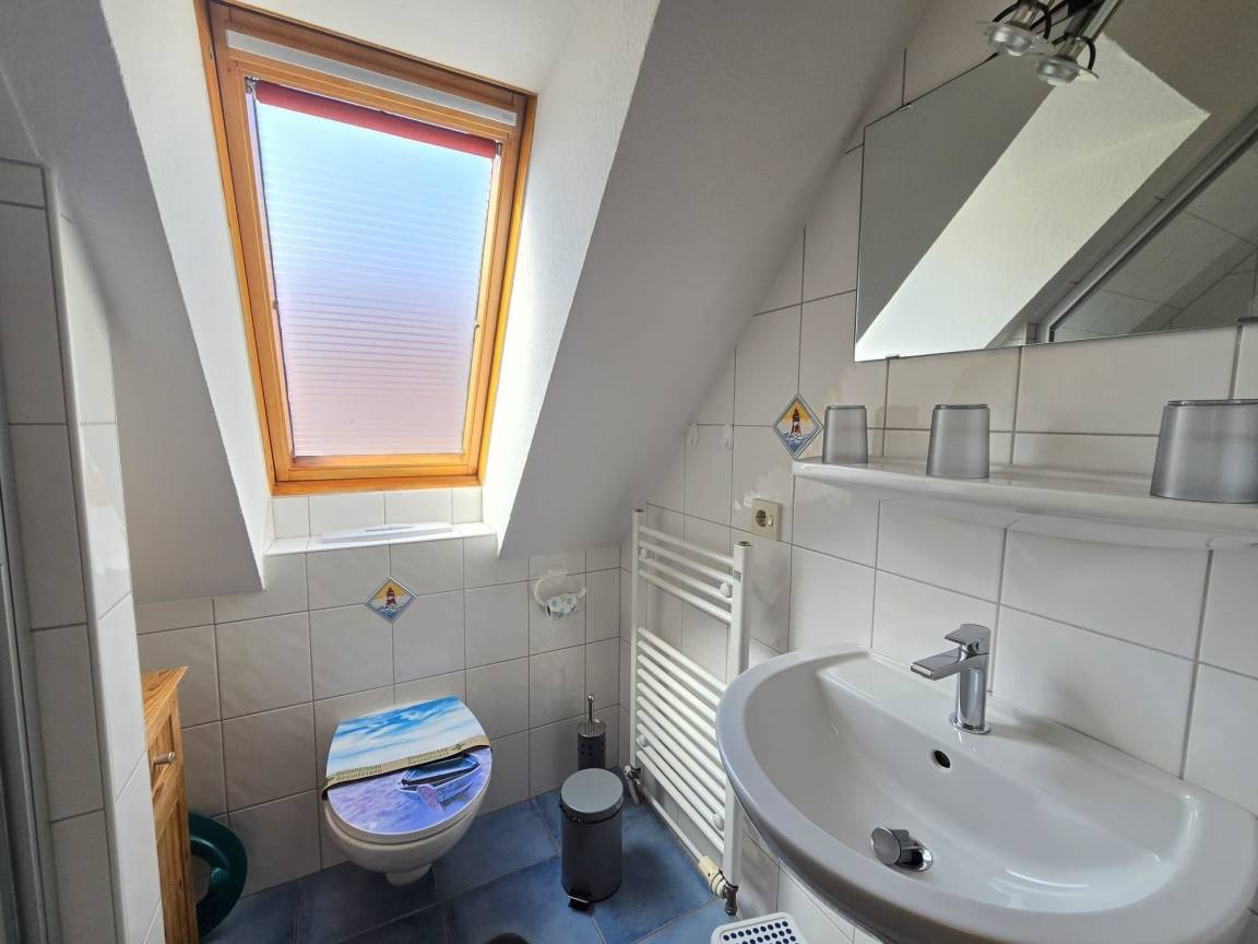 Das komfortable Ferienhaus bietet auf 84 qm Wohnfläche Platz für bis zu sechs Personen und ein Kleinkind. Im Erdgeschoss befindet sich ein großzügiger Wohn- und Essbereich mit einer voll ausgestatteten Küchenzeile sowie einem großen Esstisch. Der Wohnbereich lädt mit einem Farb-TV, einer Stereoanlage und Gesellschaftsspielen zum Entspannen ein. Ein Schlafzimmer mit Doppelbett und ein Tageslichtbad mit Dusche und WC sind ebenfalls im Erdgeschoss vorhanden. Im Obergeschoss stehen ein weiteres Elternschlafzimmer, ein Kinderzimmer und ein kleines, kindgerecht gestaltetes Badezimmer zur Verfügung. Die Betten sind allergikerfreundlich und Haustiere sind nicht erlaubt. Zusätzlich ist ein Hauswirtschaftsraum mit Waschmaschine vorhanden. Bettwäsche und Handtücher können optional hinzugebucht werden.