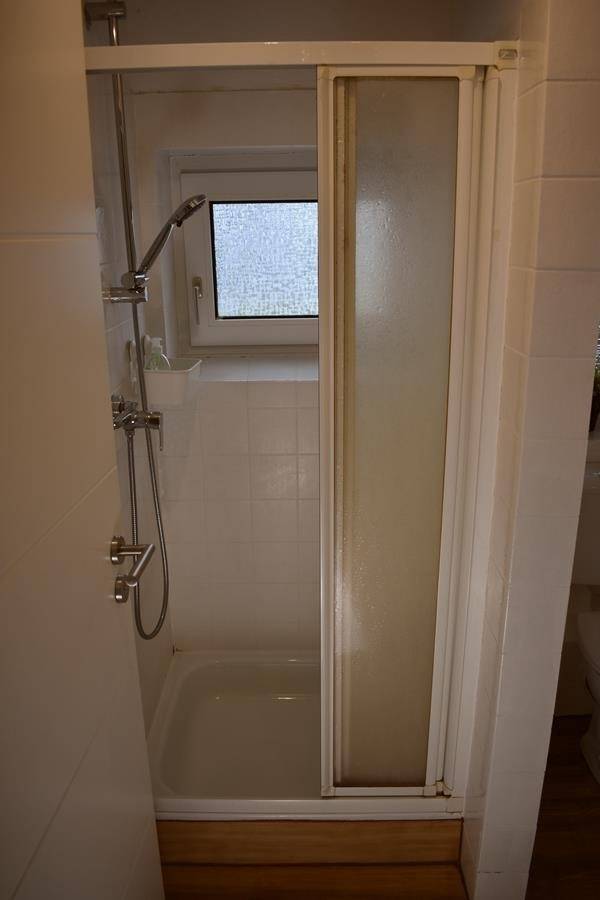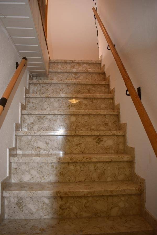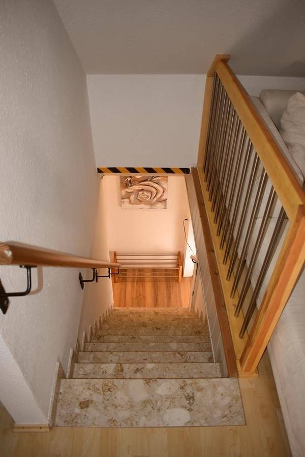 Der Zugang zum Badezimmer und zu unserer Ferienwohnung erfolgt über eine Treppe mit 15 Stufen. Es ist wichtig, dies bei der Buchung zu beachten, insbesondere wenn Sie mit kleineren Hunden oder älteren Familienmitgliedern reisen, da die Treppe etwas steiler ist und daher nicht für jeden geeignet ist. Die Treppe ist jedoch gut gesichert und gut beleuchtet.