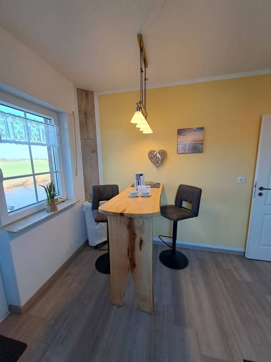 Oberwohnung mit Blick aufs Tief und Dachterrasse im Herzen von Dornum .Für 2 bis 4 Personen. Ruhige Sackgassen lage. Für Angler geeignet-Steg zum An, Angelkarten gibt es in Dornum bei der Tankstelle.Fussläufig kann man den ganzen Ort Erkundschaften