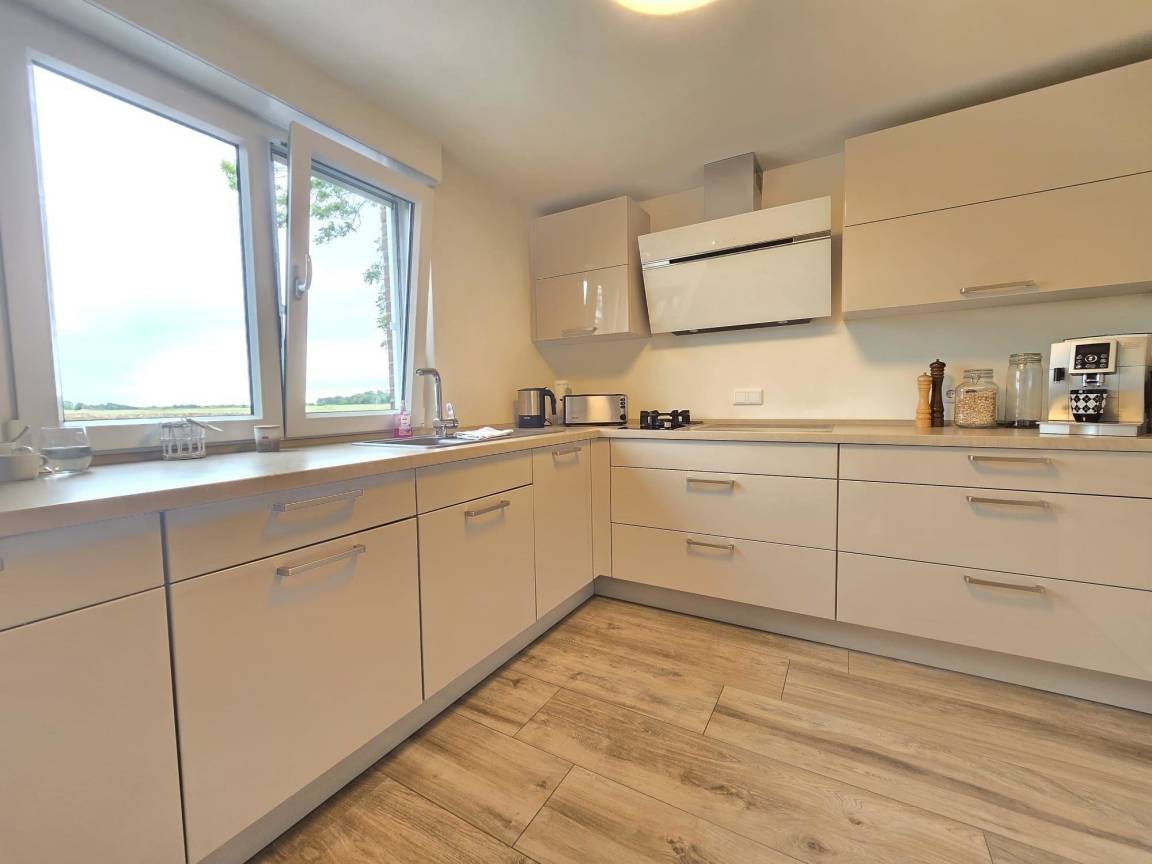 Im Ferienhaus „Zuhause am Deich" in Neßmersiel erwartet die Gäste ein modernes und liebevoll eingerichtetes Ambiente, das Platz für bis zu 6 Personen bietet. Der offene Wohn- und Essbereich zeichnet sich durch große Fensterfronten aus, die einen traumhaften Blick auf die umliegenden Felder ermöglichen. Ein Kamin sorgt für wohlige Wärme an kühleren Tagen. Die voll ausgestattete, moderne Küche bietet Herd, Backofen, Kühlschrank, Gefrierschrank, Geschirrspüler, Kaffeemaschine und Wasserkocher für kulinarische Erlebnisse. Drei komfortable Schlafzimmer, darunter ein Hauptschlafzimmer mit Doppelbett, garantieren erholsamen Schlaf. Das geschmackvoll eingerichtete Badezimmer rundet die Ausstattung ab. Bettwäsche und Handtücher können gegen Aufpreis hinzugebucht werden. Die ruhige Lage des Ferienhauses bietet eine ideale Basis für Erholung und Naturerlebnisse. Haustiere sind ebenfalls willkommen.