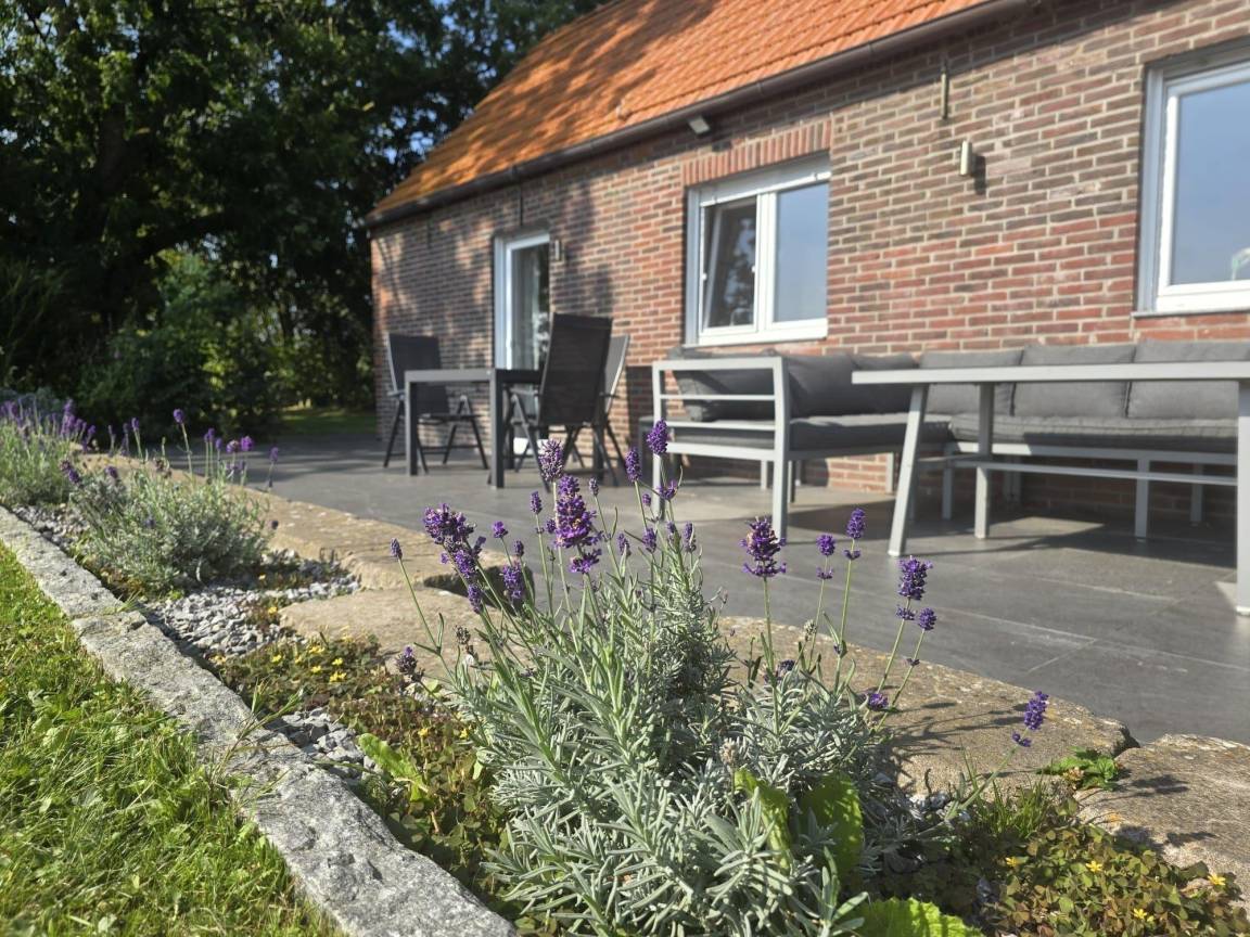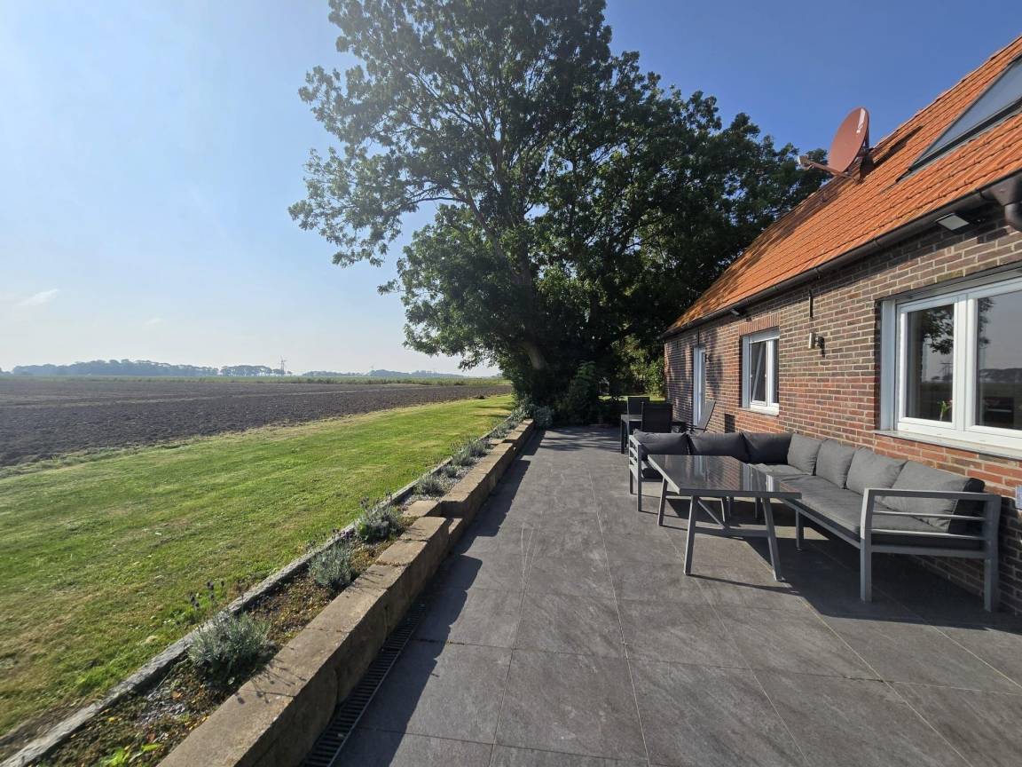Der Außenbereich des Ferienhauses „Zuhause am Deich" in Neßmersiel bietet eine sonnige Terrasse, die zum Entspannen im Freien einlädt. Hier können Gäste die frische Nordseeluft schnuppern, ein gutes Buch lesen oder gemeinsam mit Familie und Freunden grillen. Der Panoramablick über die umliegenden Felder macht jeden Moment im Freien zu einem besonderen Erlebnis.
