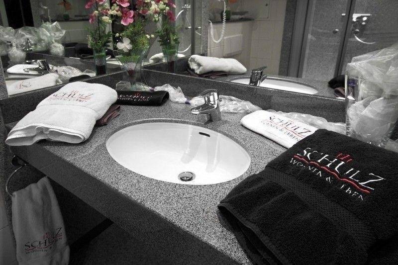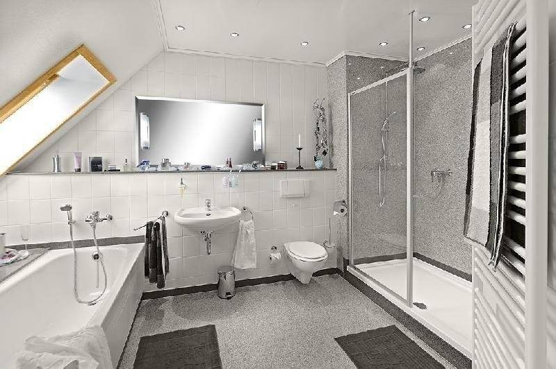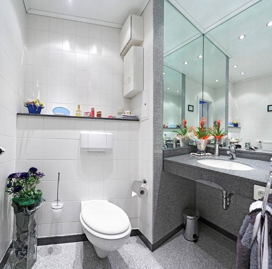 - Gäste-WC in Granit ausgeführt mit 3-Seiten Ganzverspiegelung