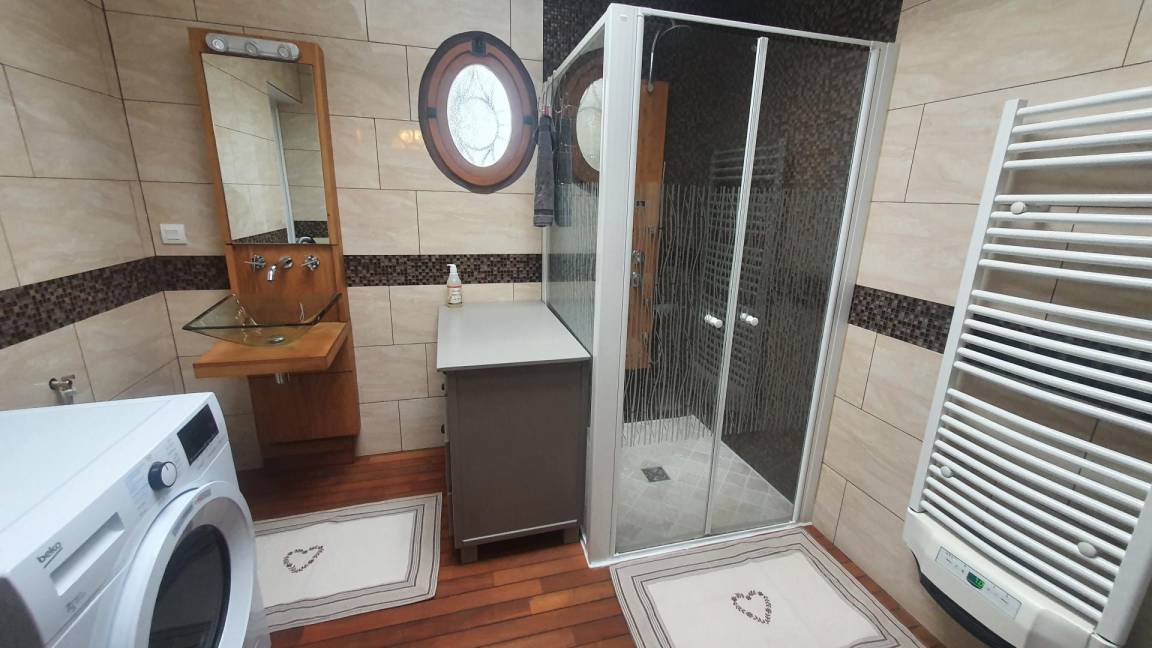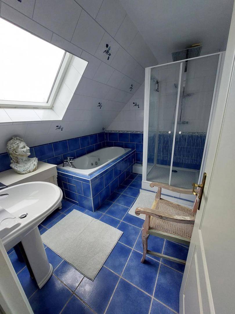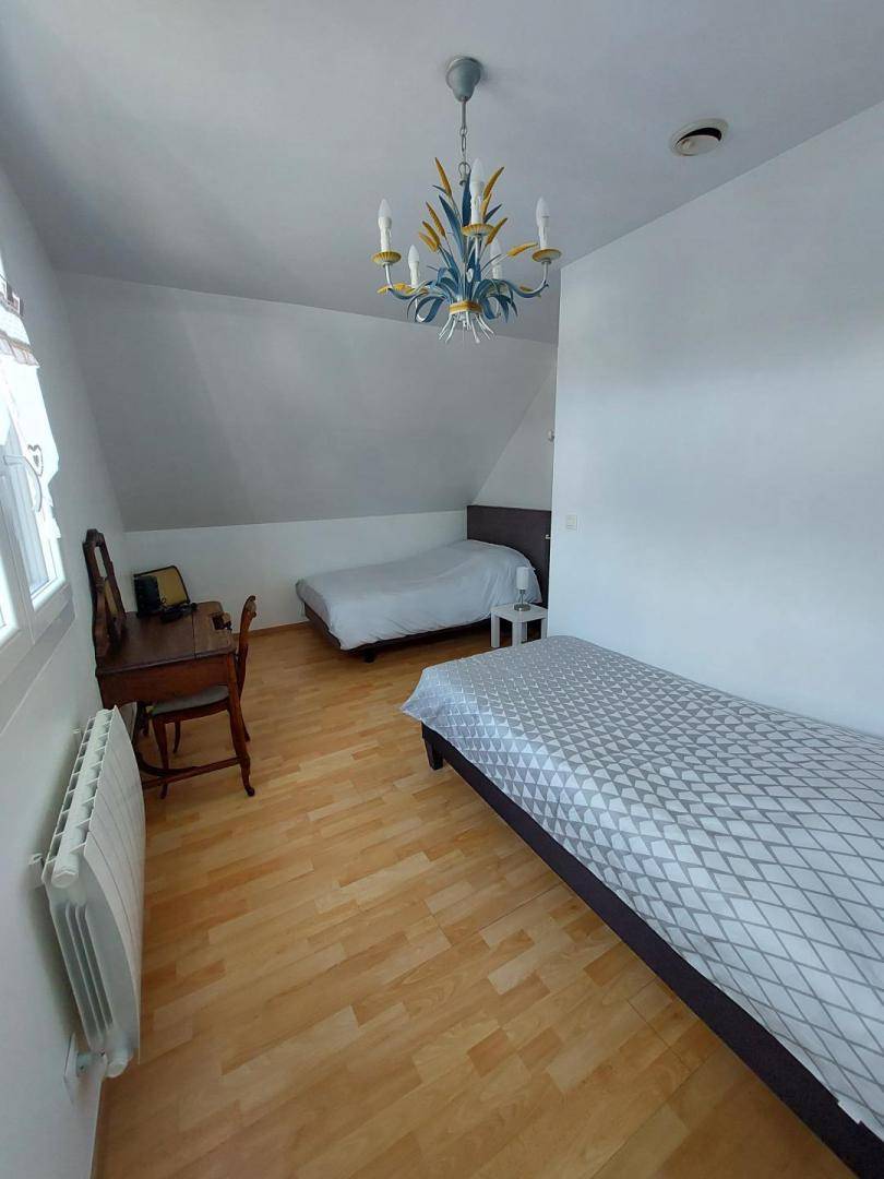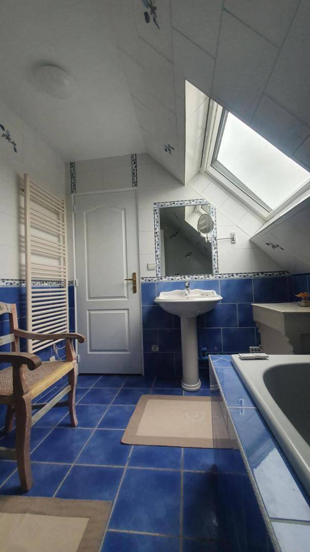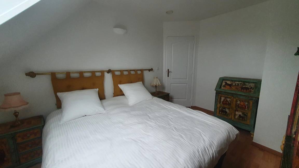Obergeschoss: ein Badezimmer mit Whirlpool-Badewanne, ein separates WC und drei Schlafzimmer: zwei Schlafzimmer mit je zwei Einzelbetten (90 x 200 cm), die zu einem Doppelbett zusammengestellt werden können, und ein Schlafzimmer mit einem Einzelbett (90 x 200 cm) und einem Doppelbett (120 x 200 cm).