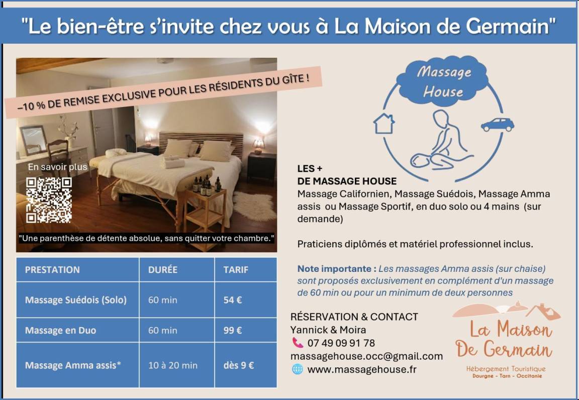 „Depuis longtemps nous avions prévu de découvrir cette partie de la France et avions repéré plusieurs sites et villages. Le temps ne sous a pas permis de faire toutes les balades et excursions prévues mais nous avons tout de même pu aller voir la magnifique cathédrale d'Albi, le musée Goya à Castres, les charmants villages de Lautrec, Sorèze, Revel,.... et après une belle grimpette la passerelle de Mazamet. Nous recommandons vivement tous ces endroits ainsi que l'abbaye-école de Sorèze et l'incroyable exposition de l’œuvre de Dom Robert. Nous avons été accueillis par des propriétaires très sympathiques et le gîte de la Maison de Germain est cGermain est très chaleureux et très bien équipé.“