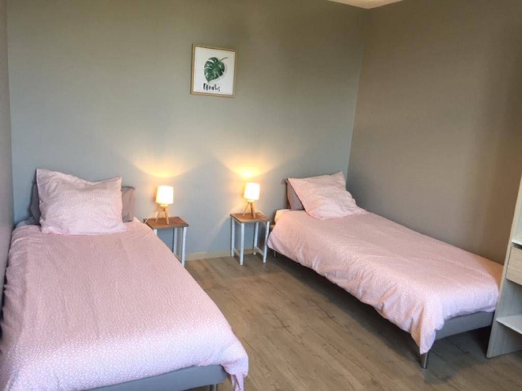 Erster Stock: 2 Schlafzimmer mit je zwei Einzelbetten, die zu einem Doppelbett zusammengestellt werden können. 1 Duschbad/WC. Zweiter Stock: 2 Schlafzimmer mit je zwei Einzelbetten, die zu einem Doppelbett zusammengestellt werden können. 1 Duschbad/WC.